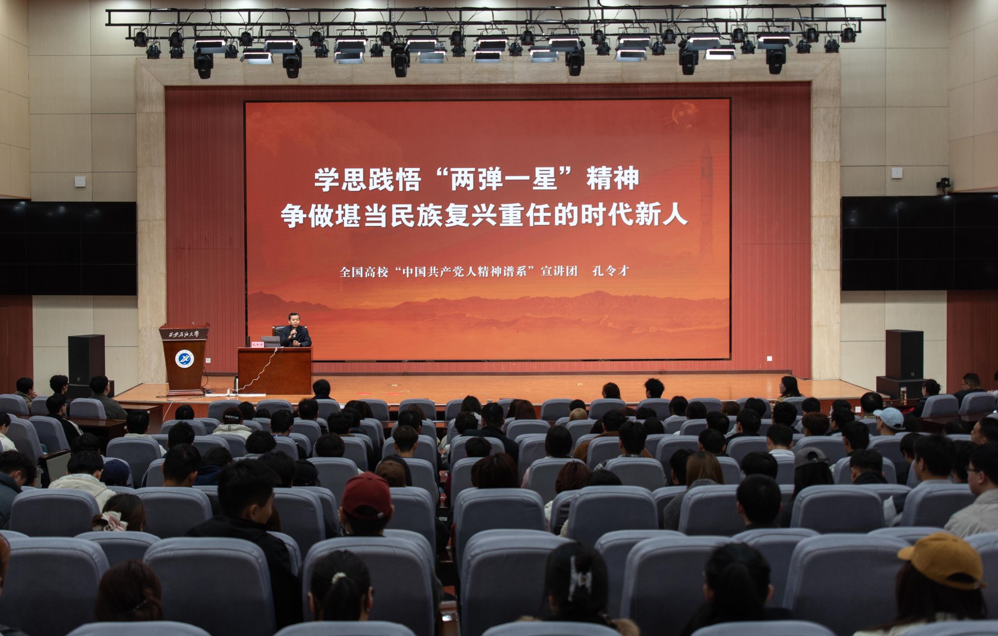 報告會上,孔令才將軍通過大量的史實和人物故事,帶領(lǐng)師生重回“兩彈一星”事業(yè)發(fā)展的崢嶸歲月,深刻感悟以“熱愛祖國、無私奉獻(xiàn),自力更生、艱苦奮斗,大力協(xié)同、勇于登攀”為內(nèi)核的“兩彈一星”精神。