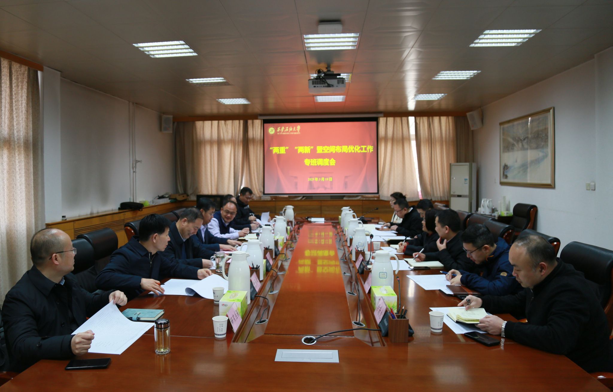 3月18日上午,學?!皟芍亍薄皟尚隆濒呖臻g布局優(yōu)化工作專班調(diào)度會在雁塔校區(qū)辦公樓五樓會議室召開。校長王進富出席會議,黨委辦公室(校長辦公室)、發(fā)展規(guī)劃處、教務(wù)處、科研處、研究生院、財務(wù)處、審計處、國有資產(chǎn)處、采購招標處、基建處、后勤處、音樂系等單位主要負責人參加會議。會議由副校長趙健主持。