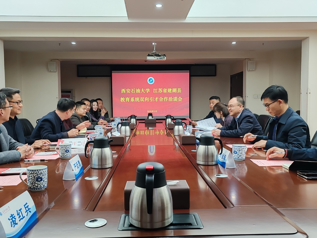 趙健對建湖縣各位領導的到來表示熱烈歡迎,并詳細介紹了學?;厩闆r。他指出,建湖縣擁有優(yōu)質的教育資源,強勁的發(fā)展勢頭和廣闊的就業(yè)市場,行業(yè)企業(yè)與我校專業(yè)高度匹配,對我校學生具有較強吸引力。西安石油大學作為西北地區(qū)惟一一所以石油石化為特色的綜合性多科性大學,始終致力于培養(yǎng)高素質應用型人才。學校與建湖縣在招生就業(yè)、校地合作等方面有著廣闊的合作空間,希望通過此次洽談,進一步深化校地合作關系、創(chuàng)新合作形式、拓寬合作領域,吸引更多建湖優(yōu)秀學子報考我校,同時也為我校優(yōu)秀畢業(yè)生提供更多優(yōu)質的就業(yè)崗位。