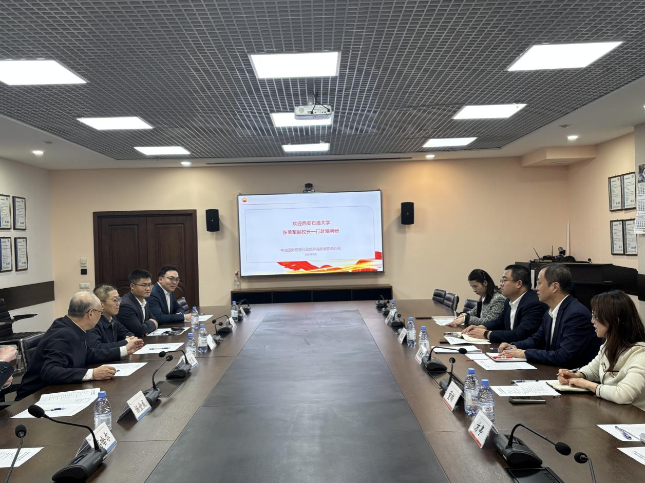 3月29日,張榮軍與華油能源集團哈薩克斯坦分公司領(lǐng)導(dǎo)和代表進行會談。華油能源集團哈薩克斯坦大區(qū)總經(jīng)理張磊、哈薩克斯坦大區(qū)阿拉木圖辦事處主任朱施霖、哈薩克斯坦大區(qū)克孜勒奧爾達項目部經(jīng)理袁再旺參加座談。雙方圍繞屬地化員工培訓、人才輸送、技術(shù)攻關(guān)、實驗室聯(lián)合建設(shè)等進行深入探討。華油能源集團哈薩克斯坦大區(qū)代表們還為學校面向哈薩克斯坦開展國際教育科技合作提供了寶貴的意見建議。