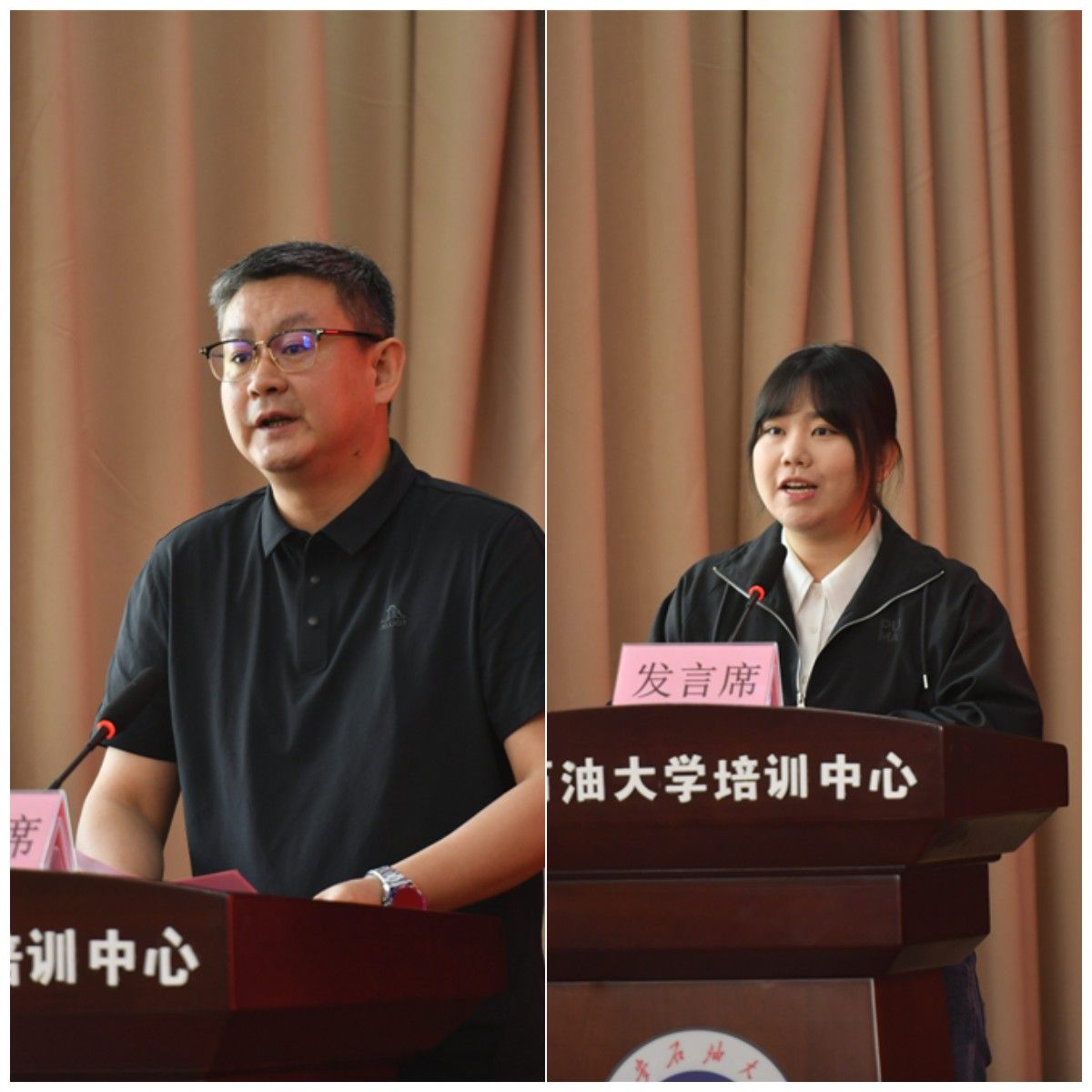 同力申碩石油與天然氣工程學(xué)科唐煒、專升本人力資源管理專業(yè)韓伊茗代表新生發(fā)言。