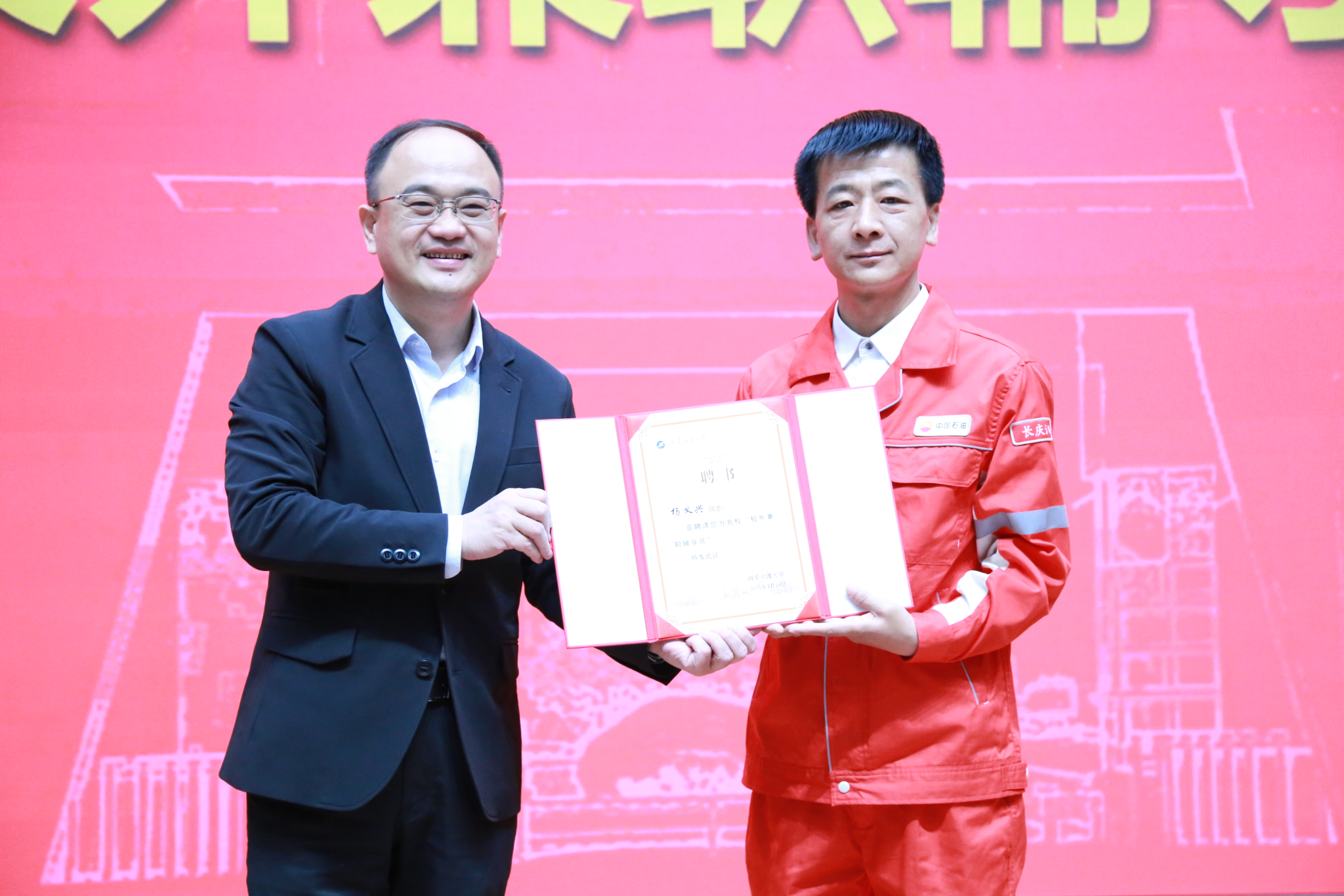 趙健代表學(xué)校對(duì)兩名優(yōu)秀校友回到母校表示歡迎,對(duì)校友所獲榮譽(yù)表示祝賀,并要求現(xiàn)場(chǎng)同學(xué)要以此次報(bào)告會(huì)為契機(jī),把“干一行愛一行、鉆一行精一行”的信念融入血脈,同時(shí)提出了三點(diǎn)希望。一是要讀懂工匠精神,感悟精神的力量。他指出工匠精神是各個(gè)時(shí)代奮斗者的精神坐標(biāo),它與“鐵人精神”血脈相連,與“我為祖國(guó)獻(xiàn)石油”的信念同根同源。進(jìn)一步要求同學(xué)們要以精益求精的態(tài)度深耕專業(yè),以守正創(chuàng)新的勇氣突破自我,用踏實(shí)奮斗詮釋新時(shí)代青年的品格。二是要傳承工匠精神,擦亮奮斗底色。他表示今天學(xué)校將聘任楊義興校友作為我校的“校外兼職輔導(dǎo)員”,這是一次精神的“播種”。要求同學(xué)們要從楊義興校友講述的油田一線故事中,學(xué)習(xí)“擇一事終一生”的專注,涵養(yǎng)“千萬錘成一器”的追求,厚植“功成不必在我”的胸懷,讓“苦干實(shí)干”的石油傳統(tǒng)精神在校園里生根發(fā)芽。三是要接續(xù)精神火炬,書寫青春答卷。他談到同學(xué)們手中握著的不僅是書本,更是能源報(bào)國(guó)的接力棒。希望大家對(duì)標(biāo)優(yōu)秀校友,在新時(shí)代的征程中,用奮斗打磨青春底色,用擔(dān)當(dāng)詮釋石油人的赤誠(chéng)!