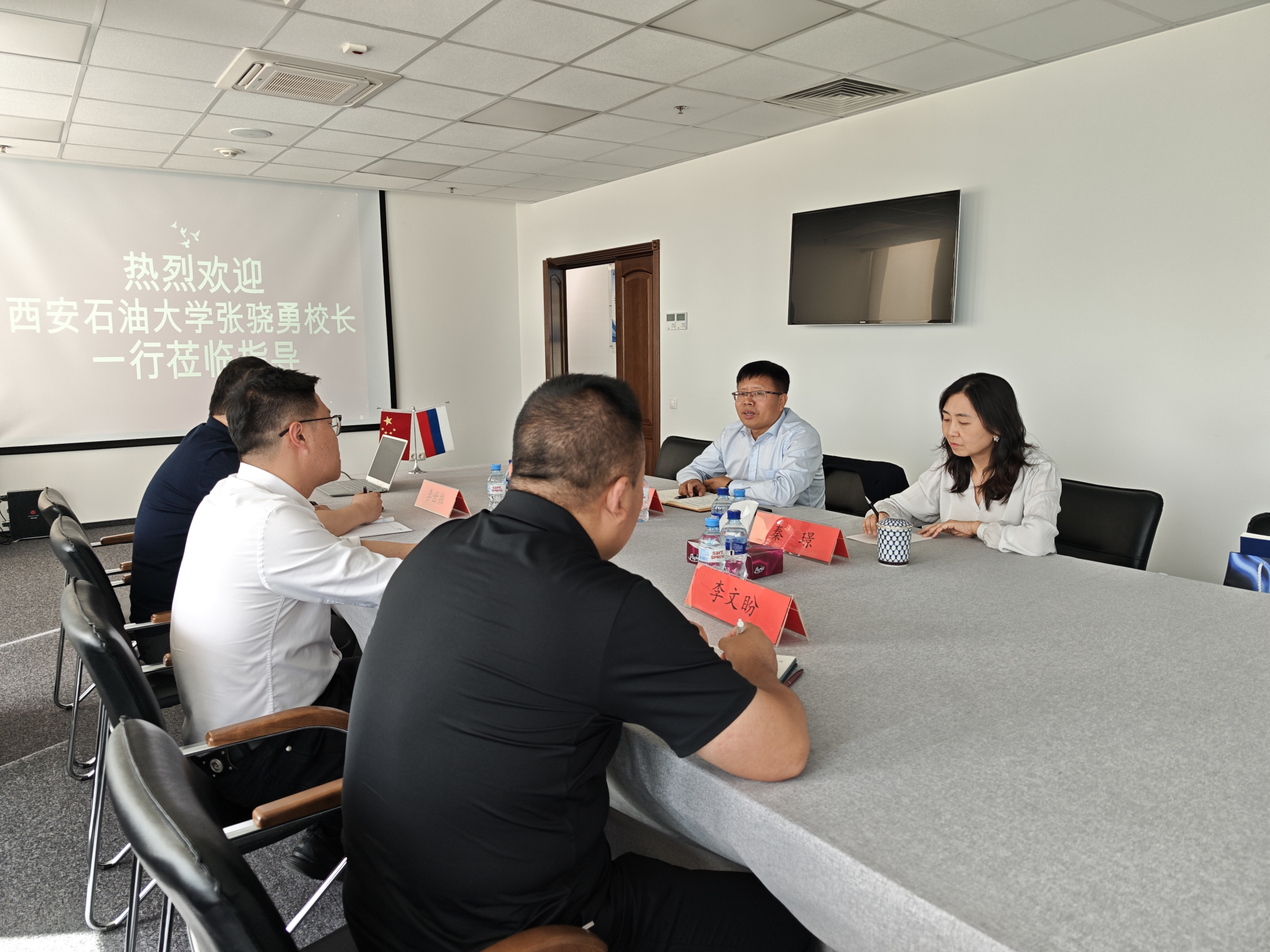 在莫期間,張驍勇一行還拜訪了中石化國(guó)際事業(yè)俄羅斯公司,與總經(jīng)理張冰峻進(jìn)行座談并探望我校校友。座談會(huì)上,張驍勇副校長(zhǎng)詳細(xì)介紹了我校近幾年的總體發(fā)展態(tài)勢(shì)以及國(guó)際化辦學(xué)取得的成果,并對(duì)學(xué)校校友工作理念進(jìn)行了解讀。張冰峻對(duì)我校為公司輸送多名優(yōu)秀人才表示感謝,并表示,學(xué)校的國(guó)際化人才培養(yǎng)高度契合企業(yè)“走出去”的發(fā)展需求,未來(lái)將加強(qiáng)對(duì)我校的關(guān)注,深入發(fā)掘合作機(jī)會(huì),校企共贏。