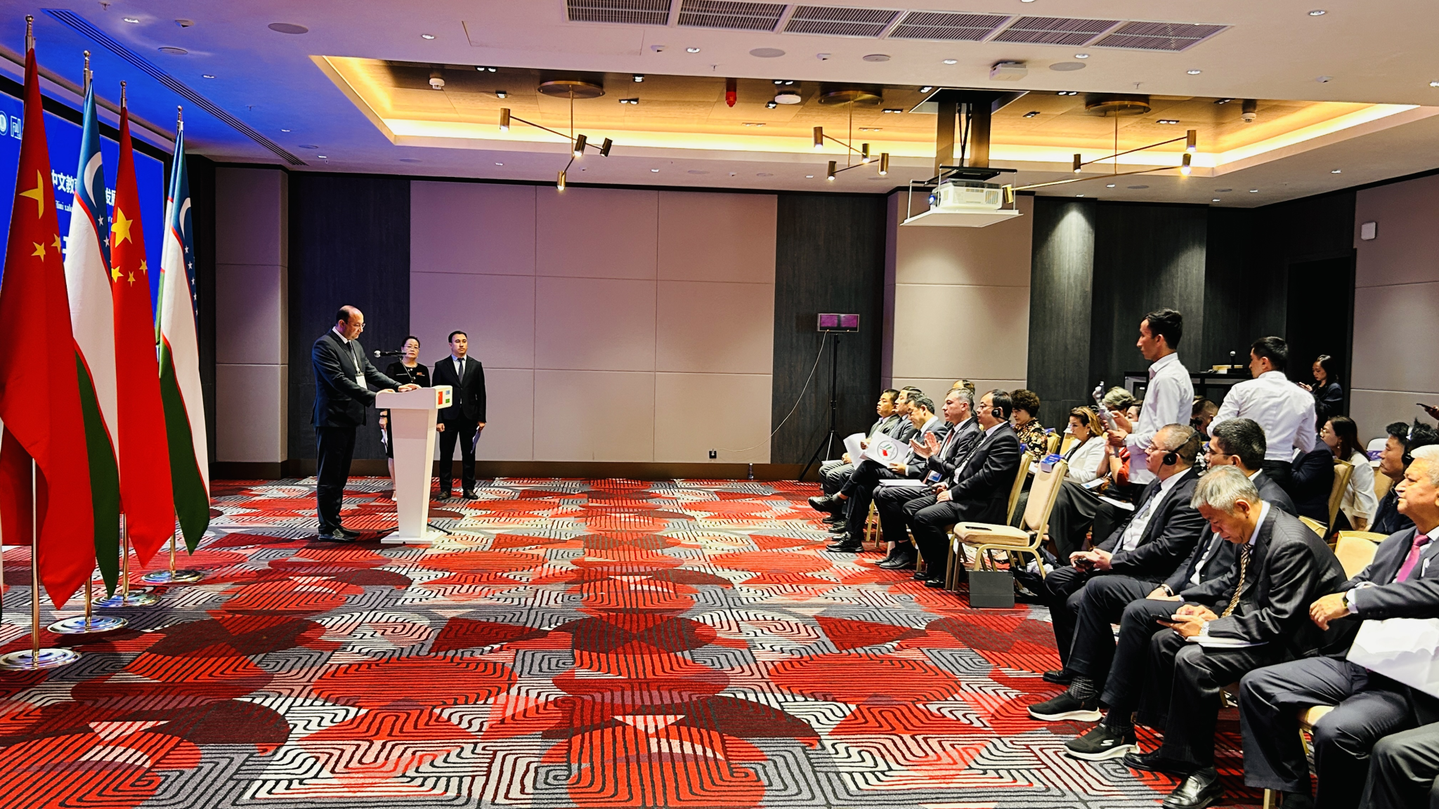 與會期間,常江分別與烏茲別克斯坦高等教育、科學與創(chuàng)新部長沙里波夫、卡什卡達里亞州副州長奧利姆洪·魯斯塔莫夫及布哈拉工程技術大學、撒馬爾罕國立科技大學、薩馬爾罕國際學院等學校領導進行了友好交流。開幕式簽約后,與烏方教育部、能源部就共建烏茲別克斯坦分校工作召開了三方現(xiàn)場座談會,并分別參加了國際中文教育高質(zhì)量發(fā)展論壇、國際交通領域人才培養(yǎng)論壇。