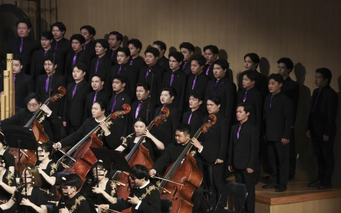 《絲路之聲》由“金鐘獎(jiǎng)”作品獎(jiǎng)得主、青年作曲家王云飛傾力創(chuàng)作,一級(jí)指揮、中央民族樂團(tuán)首席指揮劉沙執(zhí)棒首演。本場演出集百名演奏家的物理規(guī)模、多元樂器的文化縱深、頂尖藝術(shù)家的技術(shù)高度,集“器、樂、情”于一體,完成對絲綢之路的當(dāng)代音樂敘事,展現(xiàn)中國民族音樂在時(shí)代的包容品格與創(chuàng)新勢能。音樂會(huì)以“物之聲”“樂之聲”“情之聲”三大篇章敘事:“物之聲”中,打擊樂與弦樂的《絲》勾勒絲綢文明的流動(dòng)之美,雙二胡協(xié)奏曲《馬》重現(xiàn)古道駝鈴;“樂之聲”里,薩塔爾、冬不拉等絲路樂器輪番登場,《炫》通過手鼓互動(dòng)復(fù)刻長安西市盛景。作為音樂會(huì)“情之聲”篇章的壓軸之作,《世界之門》以交響化人聲與民族管弦樂交織,構(gòu)建起連接古今的音樂時(shí)空。合唱團(tuán)學(xué)子以飽滿張力演繹“世界之門,八音和鳴,與世共長”的歌詞,既回蕩著古絲路“萬國笙簫”的歷史余韻,更彰顯“一帶一路”倡議下開放合作的時(shí)代強(qiáng)音。當(dāng)和聲在音樂廳激蕩,千余名觀眾以經(jīng)久掌聲為這場文明對話喝彩。