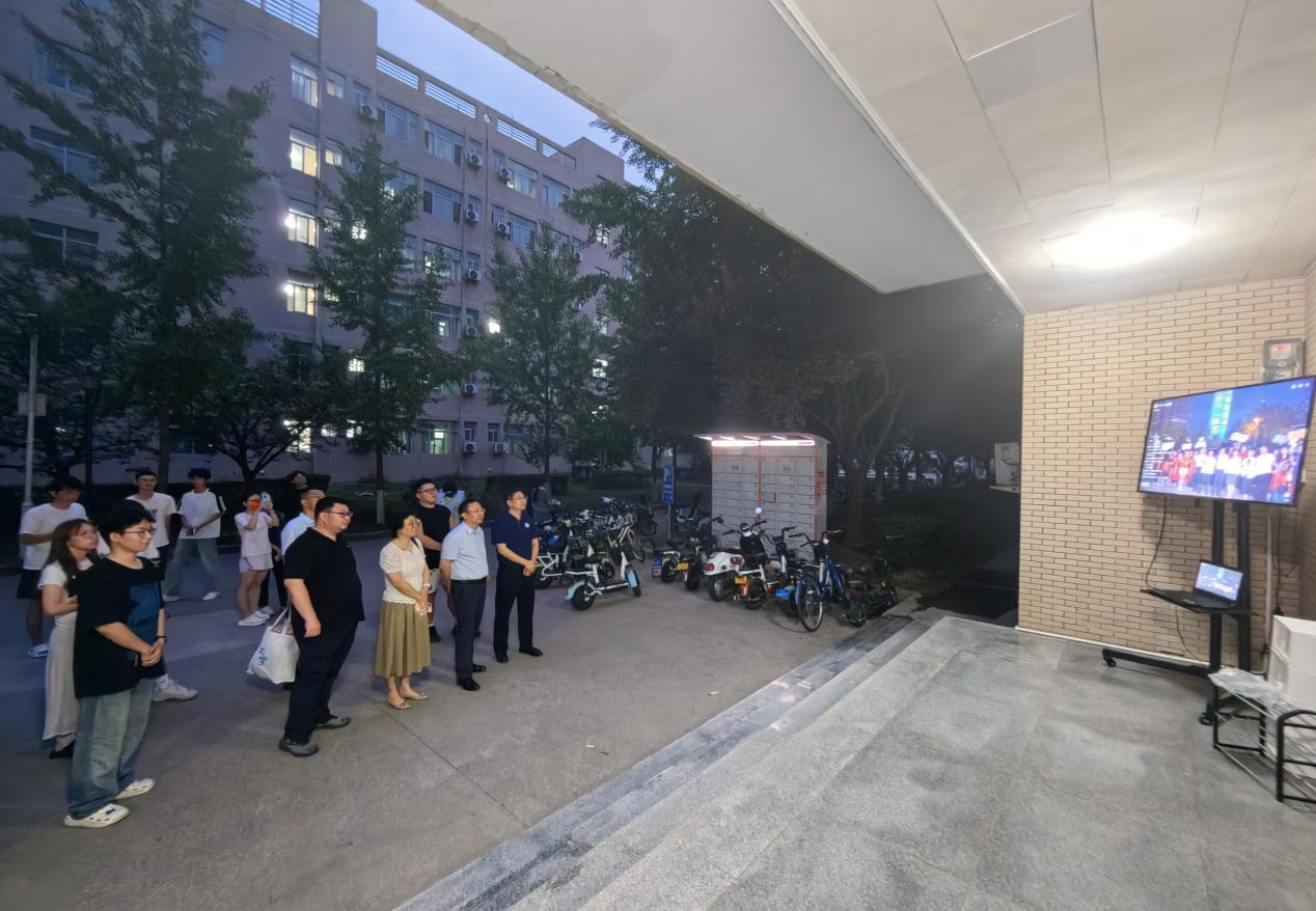 除現(xiàn)場(chǎng)打卡外,黨委學(xué)生工作部精心組織畢業(yè)生們?cè)卩傄匦^(qū)各宿舍樓大廳內(nèi)外,共同見(jiàn)證這份來(lái)自城市天際線(xiàn)的深情告白。副校長(zhǎng)種宇宏在學(xué)工部主要負(fù)責(zé)人陪同下,逐樓走訪(fǎng)各觀禮點(diǎn)位,全程陪伴同學(xué)們觀看直播。