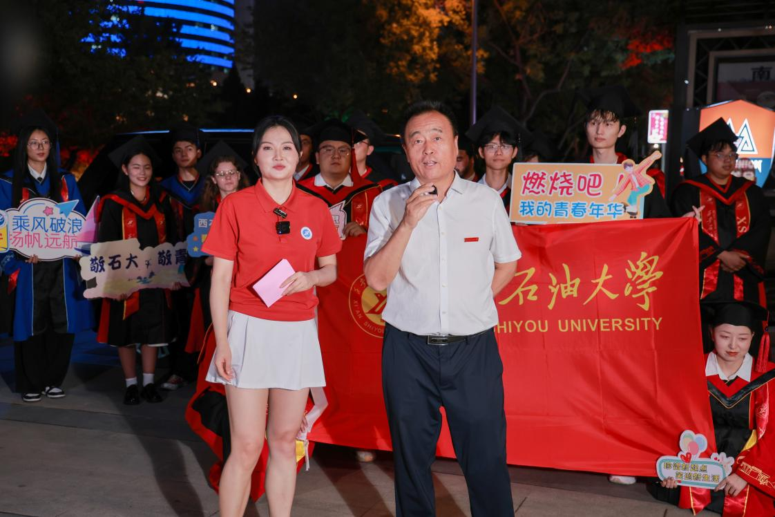 仲夏之夜,情滿(mǎn)石大。6月19日晚,“城市之窗”陜西信息大廈為西安石油大學(xué)2025屆畢業(yè)生點(diǎn)亮專(zhuān)屬祝福燈光,璀璨的“我?西安石油大學(xué)”字樣輝映古城。校黨委副書(shū)記程永清,副校長(zhǎng)種宇宏,黨委辦公室(校長(zhǎng)辦公室)、黨委組織部、黨委宣傳部、黨委學(xué)生工作部、黨委教師工作部、教務(wù)處、研究生工作部等部門(mén)負(fù)責(zé)人,輔導(dǎo)員、本碩博及留學(xué)生代表共同見(jiàn)證。