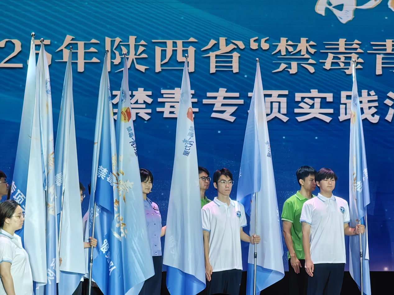 本次活動(dòng)通過(guò)科技、藝術(shù)與傳統(tǒng)文化相結(jié)合的創(chuàng)新形式,全方位展現(xiàn)陜西省禁毒工作成果,號(hào)召全社會(huì)特別是青少年群體積極參與禁毒行動(dòng),共同守護(hù)“無(wú)毒三秦”。作為禁毒宣傳的骨干力量,來(lái)自全省21所高校的禁毒實(shí)踐團(tuán)代表在現(xiàn)場(chǎng)接受了“禁毒青力量”2025年大學(xué)生暑期“三下鄉(xiāng)”社會(huì)實(shí)踐授旗,以青春誓言扛起禁毒重任。我校電子工程學(xué)院學(xué)生高楊巖錕作為代表之一,上臺(tái)接過(guò)象征使命與責(zé)任的“禁毒青力量”旗幟。