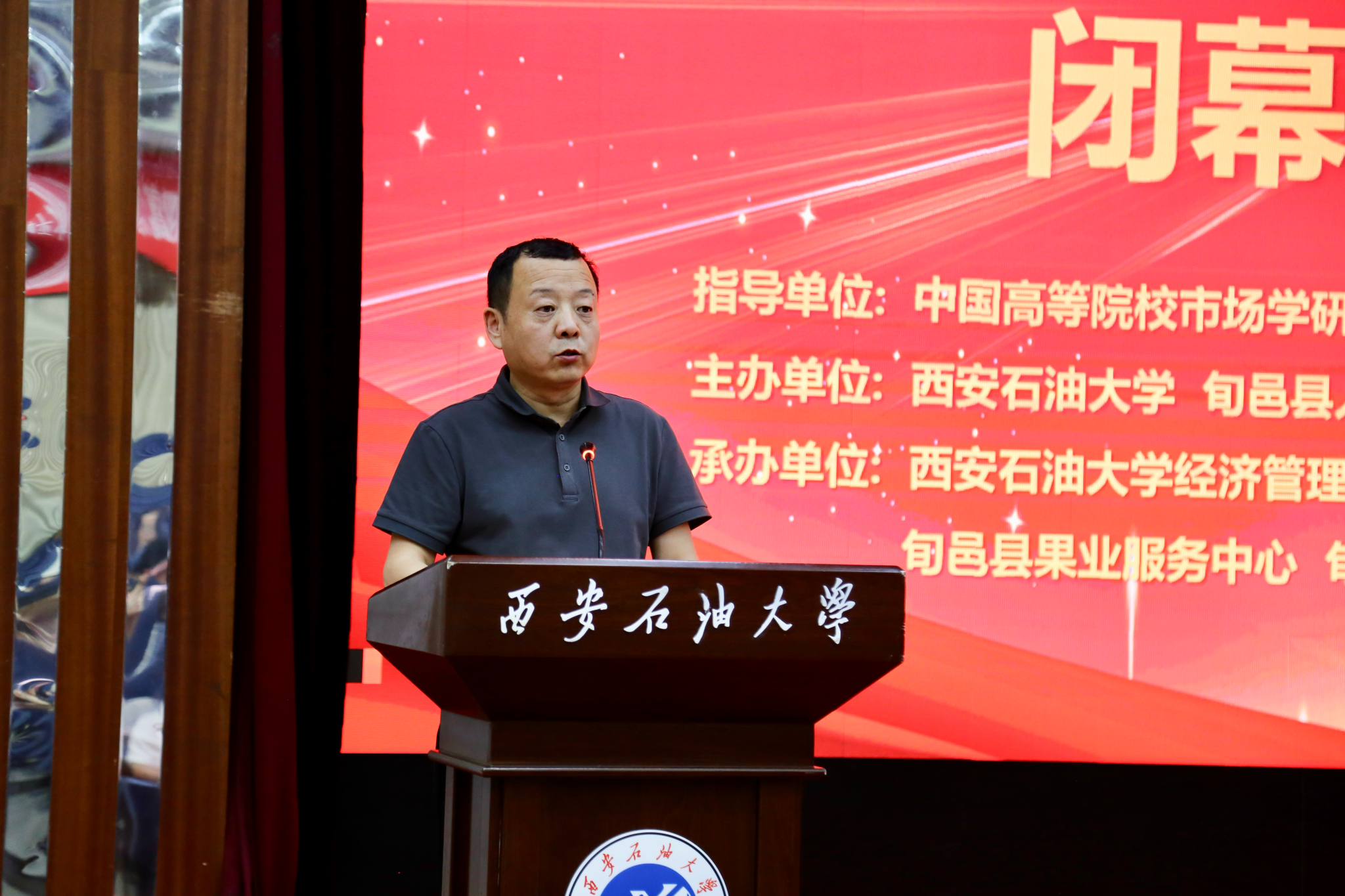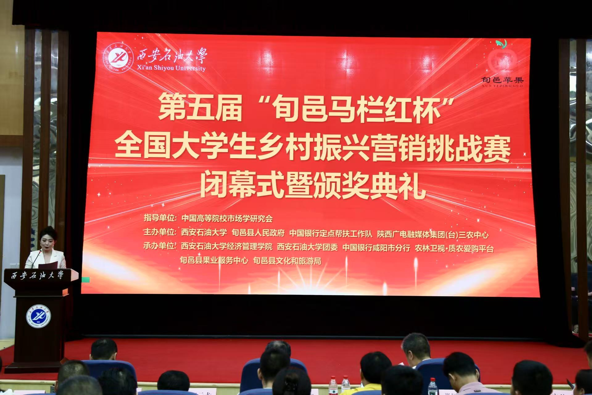 7月3日,第五屆“旬邑馬欄紅杯”全國大學(xué)生鄉(xiāng)村振興營銷挑戰(zhàn)賽閉幕式暨頒獎(jiǎng)典禮在西安石油大學(xué)雁塔校區(qū)會議中心順利舉行。本屆賽事由西安石油大學(xué)、旬邑縣人民政府、陜西廣電融媒體集團(tuán)三農(nóng)中心等單位共同主辦,中國高等院校市場學(xué)研究會為指導(dǎo)單位。咸陽市副市長葉新階、副秘書長何有明、農(nóng)業(yè)農(nóng)村局副局長袁野,陜西省果業(yè)中心綜合處處長張東峰,旬邑縣委副書記、縣長陳永勝、副縣長譚震,陜西廣電融媒體集團(tuán)質(zhì)農(nóng)愛購平臺總經(jīng)理趙小飛,中國銀行咸陽分行行政事業(yè)部主任朱燕萍、陜西日報(bào)群眾新聞網(wǎng)副總經(jīng)理劉強(qiáng),西安石油大學(xué)黨委副書記張木等出席閉幕式。參賽團(tuán)隊(duì)、企業(yè)負(fù)責(zé)人百余人到場參會。