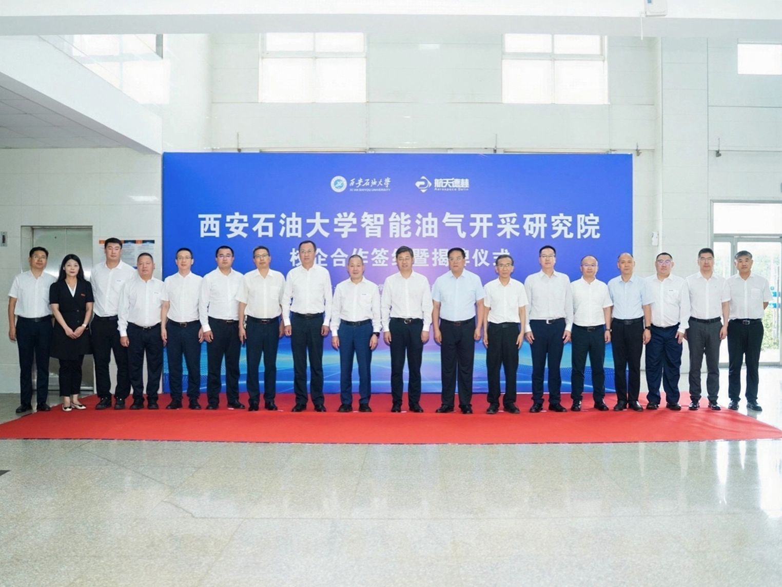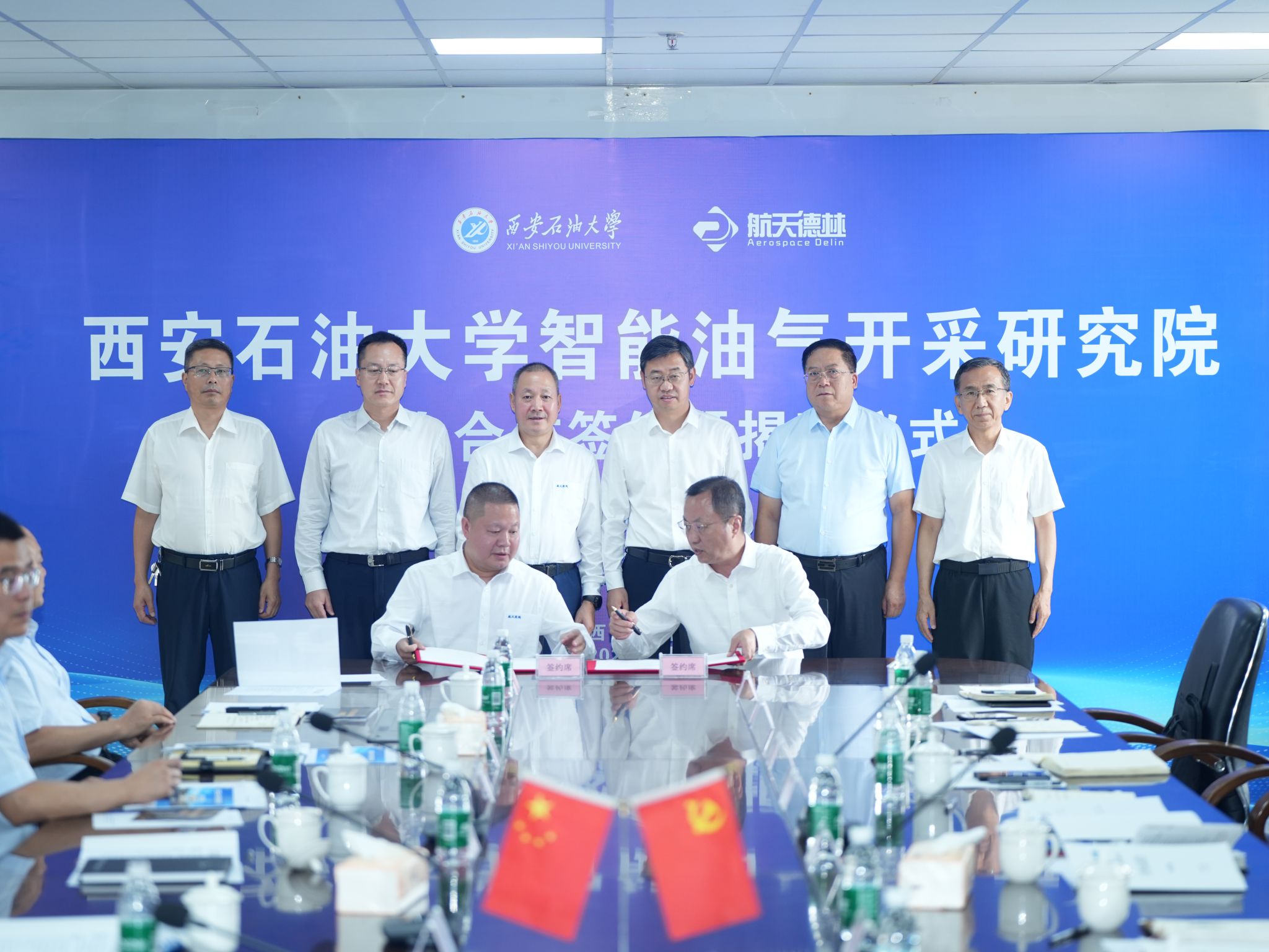 7月8日下午,我校與陜西航天德林科技集團有限公司(以下簡稱“航天德林”)在企業(yè)會議室舉行共建智能油氣開采研究院合作協(xié)議簽署暨揭牌儀式。高陵區(qū)委副書記、區(qū)長鄒曉剛,高陵區(qū)委常委、常務副區(qū)長陳靈,高陵區(qū)政協(xié)黨組副書記、副主席、西安涇河工業(yè)園黨工委書記、管委會主任譚勝利,航天德林集團董事長林忠燦,總經(jīng)理林宗南,副總經(jīng)理林本常、林辰厚、付剛、李順宏以及我校校長王進富,黨委委員、副校長張榮軍出席會議。會議由我校黨委副書記張木主持。