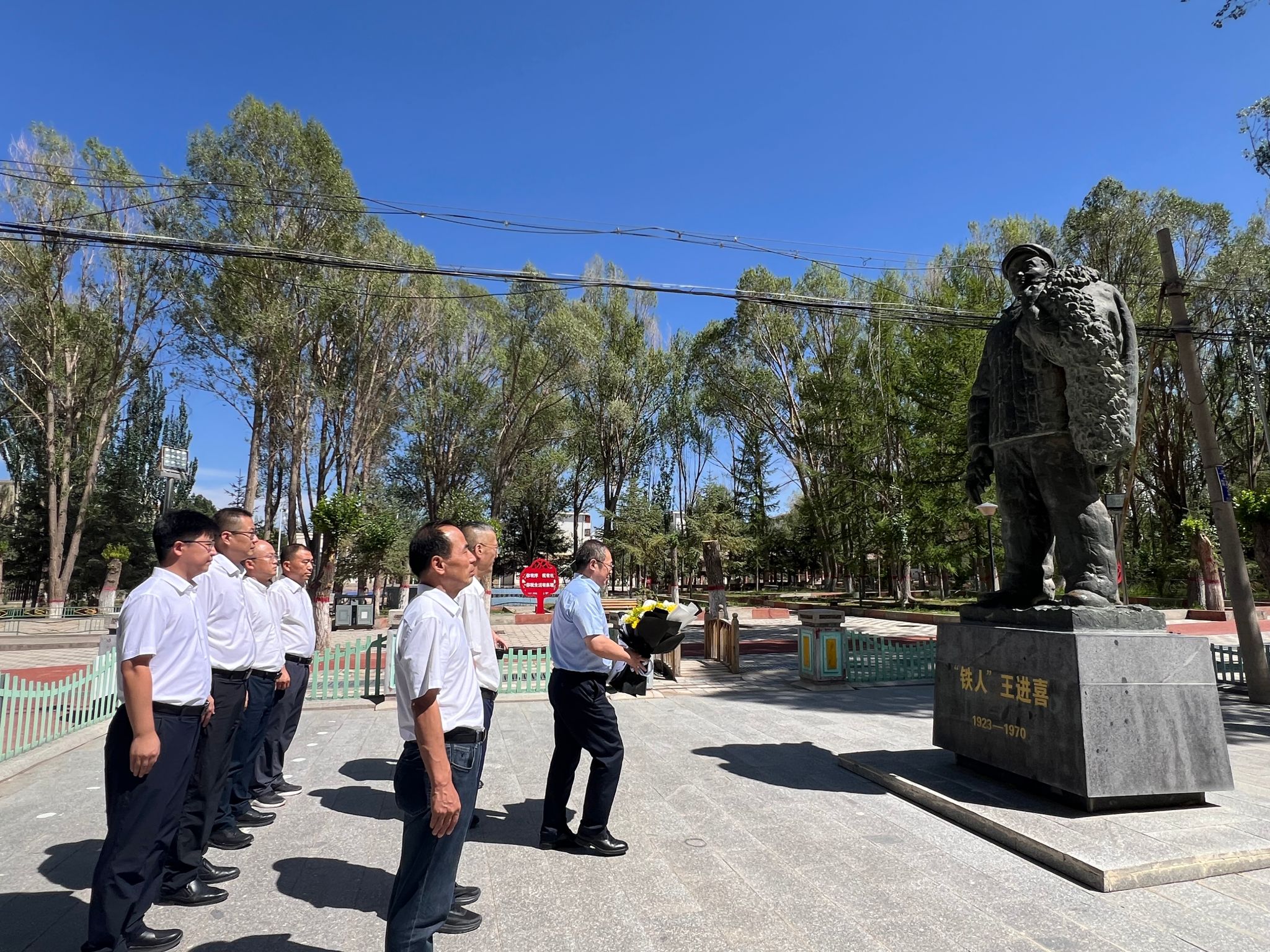 在玉門老城區(qū),常江一行專門拜祭了新中國(guó)西北石油工業(yè)奠基人、西北石油工業(yè)學(xué)校創(chuàng)建者之一的鄒明革命先輩,代表學(xué)校敬獻(xiàn)了鮮花,向新中國(guó)西北石油工業(yè)奠基人、西北石油工業(yè)學(xué)校創(chuàng)建者之一的孫健初紀(jì)念碑和鐵人王進(jìn)喜銅像敬獻(xiàn)了鮮花。玉門油田黨委委員、總地質(zhì)師唐海忠,生產(chǎn)保障服務(wù)中心執(zhí)行董事、黨委書(shū)記王美強(qiáng)陪同參加當(dāng)天活動(dòng)。