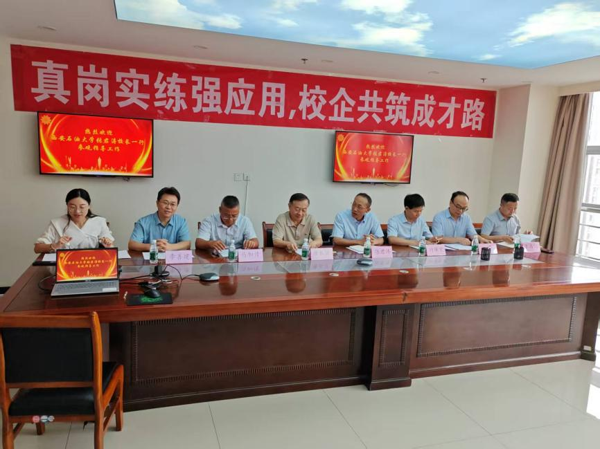 授牌儀式上,張君濤代表學校向長之河公司在共建校外實習實踐教學基地過程中給予的支持,以及長期以來對學校發(fā)展的大力幫助表示誠摯感謝。他簡要回顧了學校70余年的辦學歷史與發(fā)展脈絡,詳細介紹了學校第三次黨代會擘畫的發(fā)展藍圖、“三個小目標” 取得的階段性成果,以及形成的 “三小三大三氛圍” 良好發(fā)展態(tài)勢。張君濤指出,學校因 “油” 而生、為 “油” 而興,長期以來聚焦服務國家能源重大戰(zhàn)略領域,學校以石油石化為鮮明特色,堅守 “立足陜西、面向西北、服務全國” 的辦學定位,培養(yǎng)了大批具備 “四實一新” 特質(zhì)的高素質(zhì)專業(yè)技術(shù)人才。學校辦學特色與長之河公司的發(fā)展方向、產(chǎn)業(yè)布局高度契合。他表示,希望以此次走訪為契機,深化校企傳統(tǒng)情誼,推動合作向縱深發(fā)展,在學生就業(yè)、“卓工” 人才與專業(yè)學位研究生貫通培養(yǎng)、實踐教學基地共建等領域發(fā)揮雙方優(yōu)勢、彰顯特色,探索校企合作與產(chǎn)教融合的新范式、新路徑,助力教育、科技、人才協(xié)同高質(zhì)量發(fā)展,為保障國家能源安全戰(zhàn)略貢獻合力。