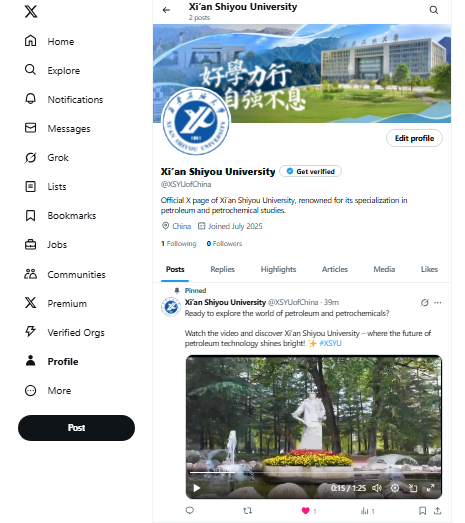 西安石油大學(xué)X平臺賬號:https://x.com/XSYUofChina
