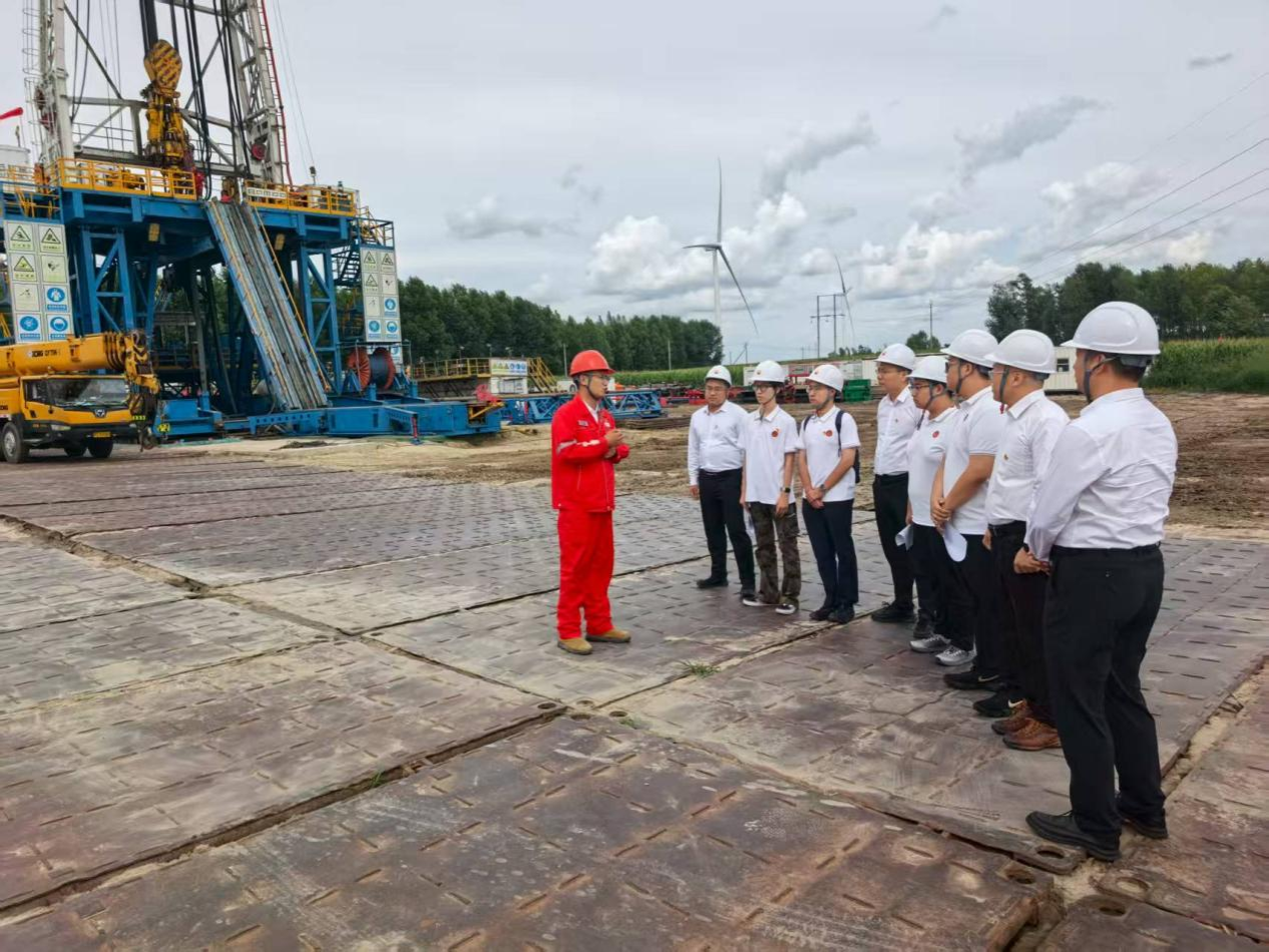 1205鉆井隊(duì)隊(duì)長段永堅(jiān)在鉆井工作現(xiàn)場為師生代表講授了一堂別開生面的生動(dòng)黨課。這不僅是一次鐵人精神的深度傳播,更是一場將紅色基因融入血脈的深刻實(shí)踐,讓師生們在鉆井平臺(tái)的轟鳴聲中,真切觸摸到石油精神的厚重根基。