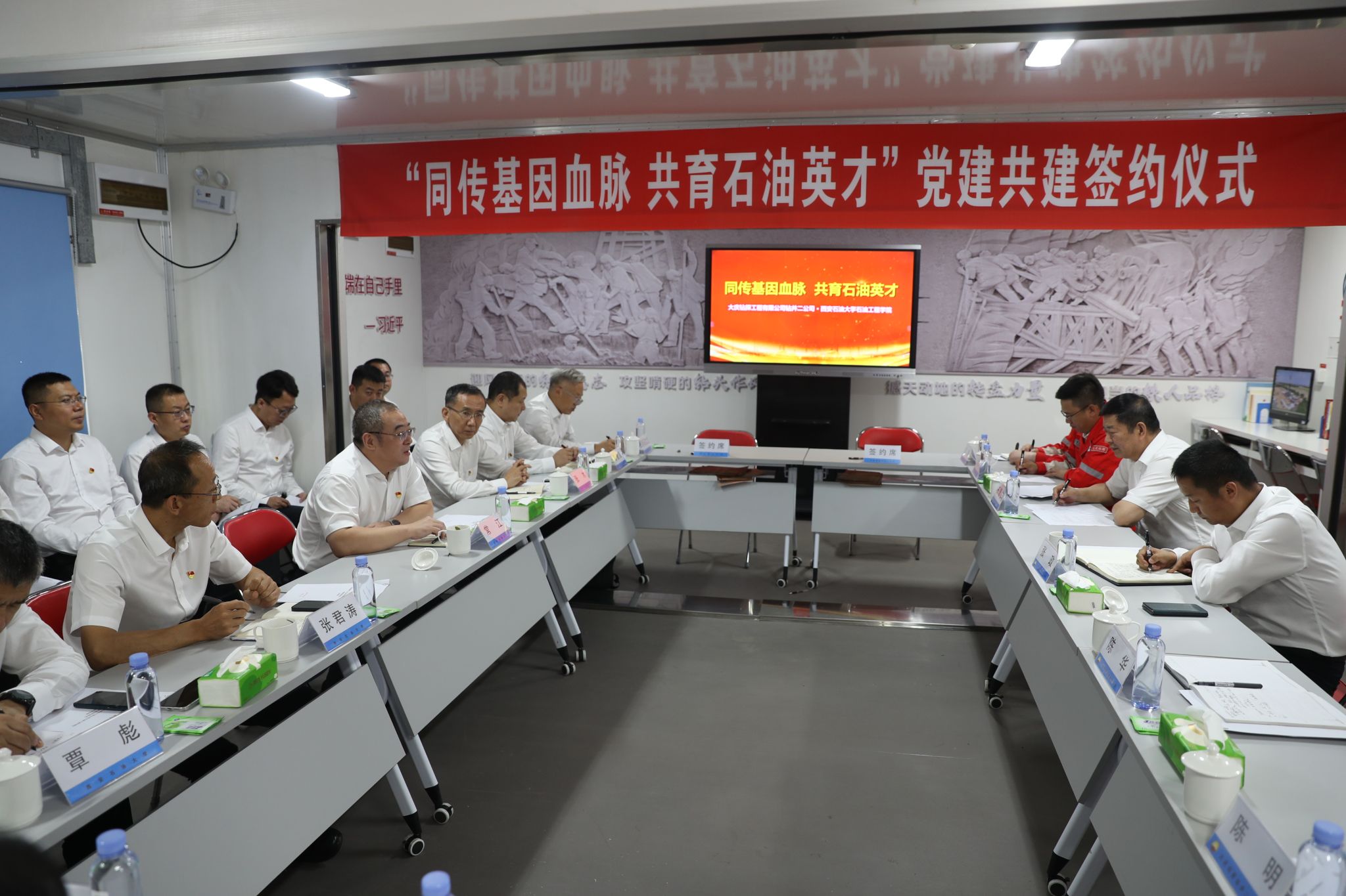 學(xué)校黨委辦公室(校長辦公室)、組織部、科研處、校友工作與合作交流處、繼續(xù)教育學(xué)院(培訓(xùn)中心),大慶鉆探黨委組織部、大慶鉆探鉆井二公司黨委組織部等部門負(fù)責(zé)人參加了上述活動(dòng),并共同見證了共建協(xié)議的簽署。此次黨建共建協(xié)議的的簽署,是學(xué)校深化“石油精神辦學(xué)、鐵人精神育人、延安精神鑄魂”鐵人大思政育人格局的重要實(shí)踐。通過組織共建,將大慶精神、鐵人精神融入學(xué)生培養(yǎng)全過程,打造“井場思政課”等特色育人平臺(tái),讓學(xué)生在實(shí)踐學(xué)習(xí)中領(lǐng)悟“三老四嚴(yán)”優(yōu)良作風(fēng),培育具有能源報(bào)國使命擔(dān)當(dāng)?shù)男聲r(shí)代石油人才,為保障國家能源安全提供堅(jiān)實(shí)的人才支撐。