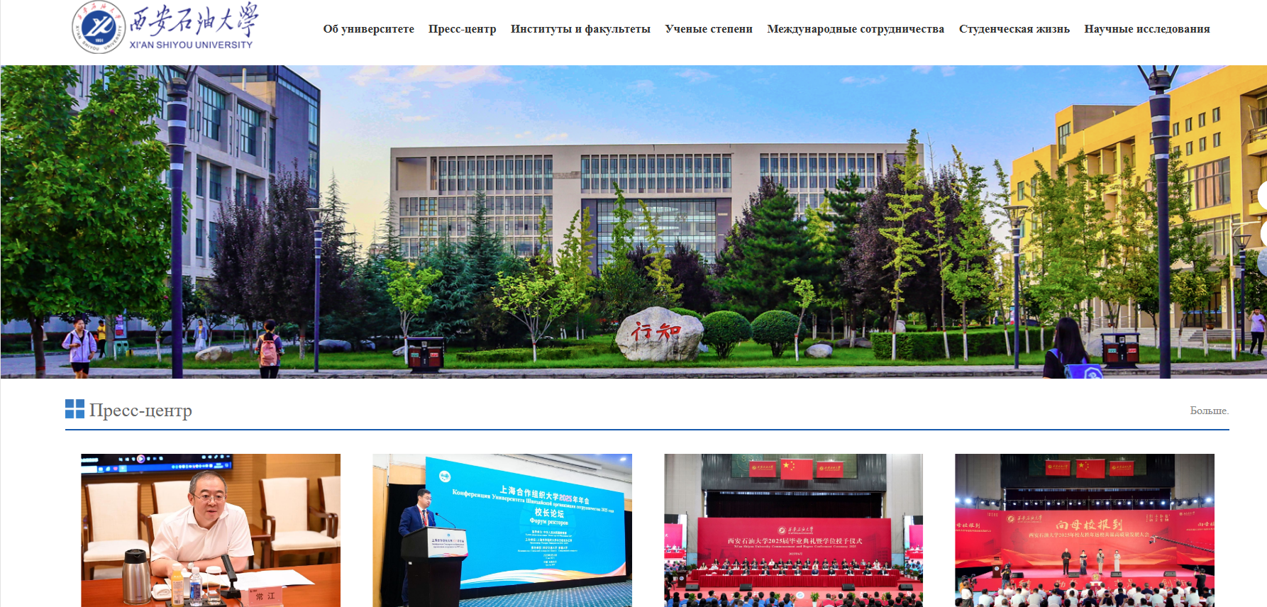 俄文主頁聚焦學校核心發(fā)展成果,開設學校概況(об университете)、新聞中心(Пресс-центр)、院系介紹(Институты и факультеты)、學術學位(Ученые степени)、國際合作(Международные сотрудничества)、校園生活(Студенческая жизнь)、科學研究(Научные исследования)等特色板塊,系統(tǒng)呈現(xiàn)學校在人才培養(yǎng)、科學研究、社會服務等方面的綜合實力,尤其突出國際化辦學的鮮明特色與豐碩成果,為俄語世界打開一扇了解西石大的全新窗口。