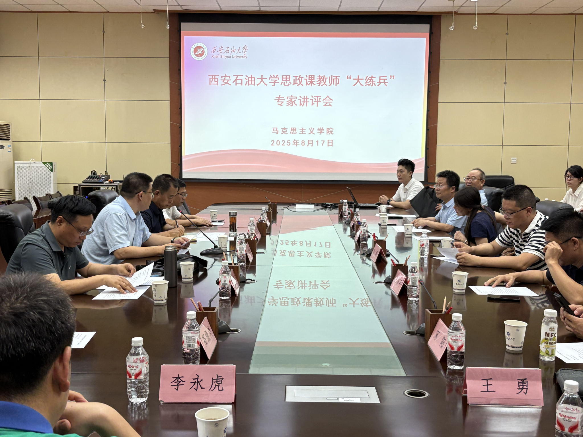 為持續(xù)推進2025年思政課教師“大練兵”活動開展,8月17日下午,我校在雁塔校區(qū)西階會議中心舉行2025年思政課教師“大練兵”講評會。校黨委副書記程永清出席會議,馬克思主義學(xué)院院長張海濤主持本次講評會,學(xué)院領(lǐng)導(dǎo)班子成員,教師代表參加會議。