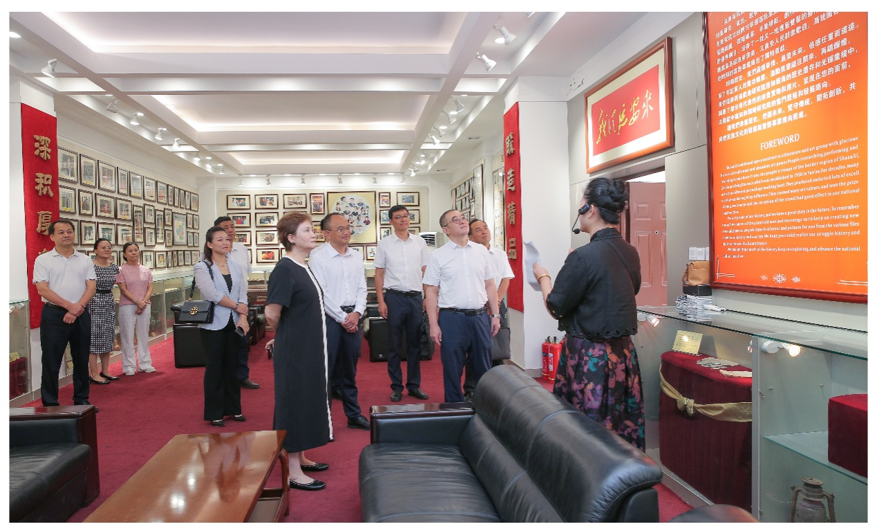 常江一行在陜西省戲曲研究院黨委書記、院長(zhǎng)李梅陪同下,先后參觀了院劇場(chǎng)、院史陳列室,觀摩了《戲曲薈萃表演》,系統(tǒng)了解了研究院自1938年延安陜甘寧邊區(qū)民眾劇團(tuán)發(fā)展至今的歷程,以及在秦腔藝術(shù)傳承、劇目創(chuàng)作、人才培養(yǎng)等方面的卓越成就,切身感受到陜西戲曲藝術(shù)的深厚底蘊(yùn)與獨(dú)特魅力。