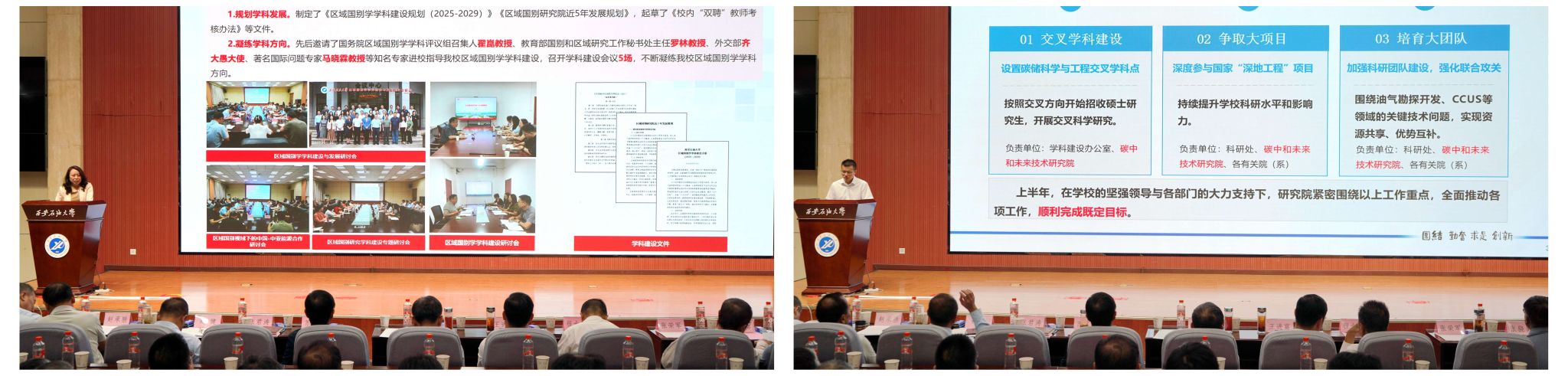 在肯定成績的同時,王進富深刻分析了學(xué)校在發(fā)展過程中存在的短板與不足,以及當前高等教育領(lǐng)域發(fā)展變革帶來的機遇與挑戰(zhàn)。他強調(diào),下半年是完成全年目標任務(wù)的關(guān)鍵期,全校上下必須堅持目標導(dǎo)向和問題導(dǎo)向:要以開好“人才工作會、年中工作會、‘十五五’規(guī)劃務(wù)虛會”三個會為依托,賦能“三個年”建設(shè),持續(xù)深化教育科技人才一體改革,奮力實現(xiàn)黨代會確立的三大目標;要以“完善三全育人體系、優(yōu)化育人品牌活動、強化有組織就業(yè)”三項措施全面提升育人質(zhì)量;要以推進中亞合作、國際科研合作、中外聯(lián)合辦學(xué)三項重點,形成開放辦學(xué)新優(yōu)勢;要加快落實基礎(chǔ)教育實質(zhì)性合作、群眾急難愁盼需求、“一老一小”保障等三項民生工作,塑造幸福西石大新形象。同時要舉全校之力做好五方共建、群像揭幕、問題整改等重點工作。