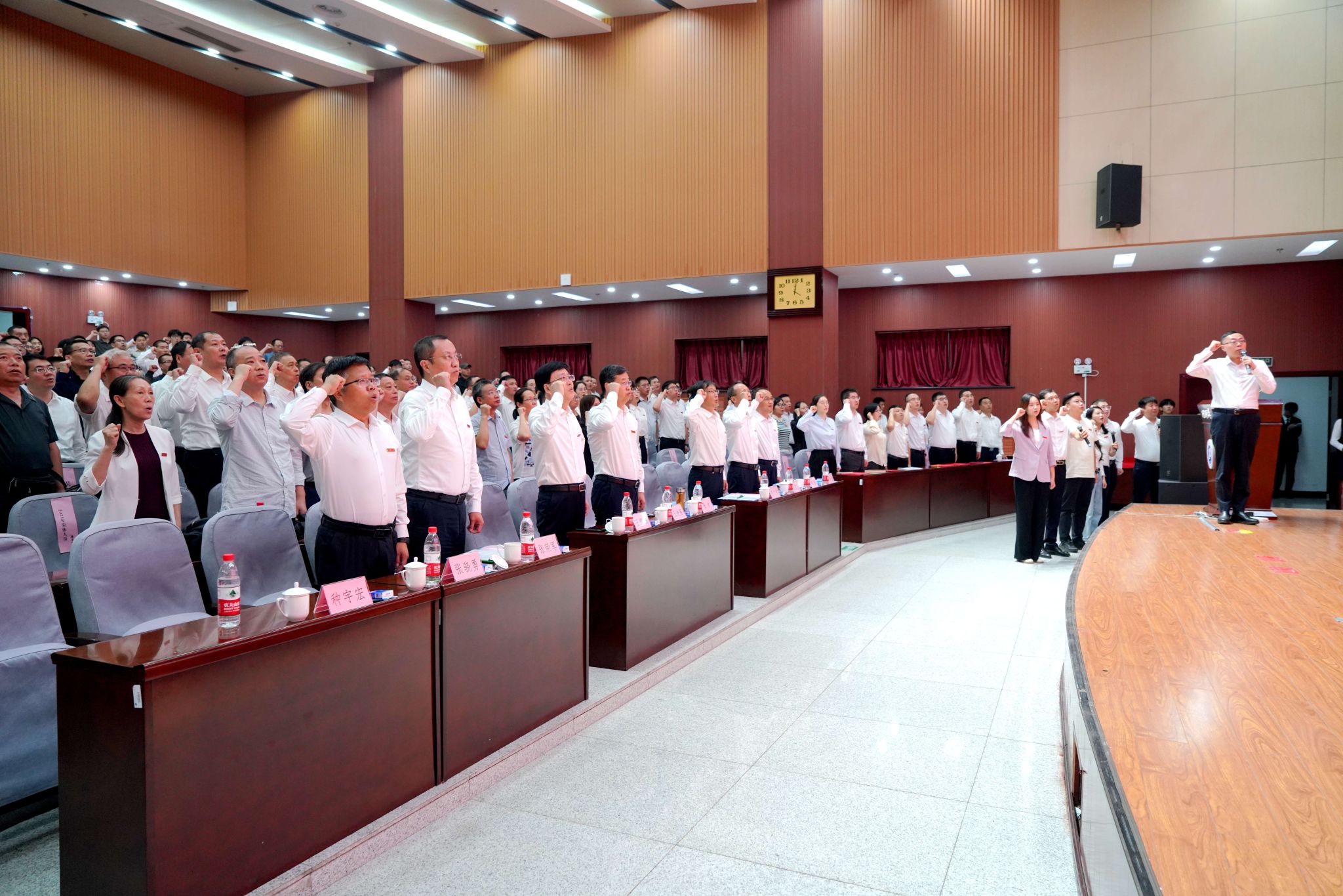 在教師宣誓儀式上,經(jīng)濟(jì)管理學(xué)院吳勛教授領(lǐng)誓,全體參會(huì)人員起立,莊嚴(yán)宣誓,表達(dá)了為黨和人民的教育事業(yè)而努力奮斗的決心,彰顯了教師職業(yè)的責(zé)任感與使命感。