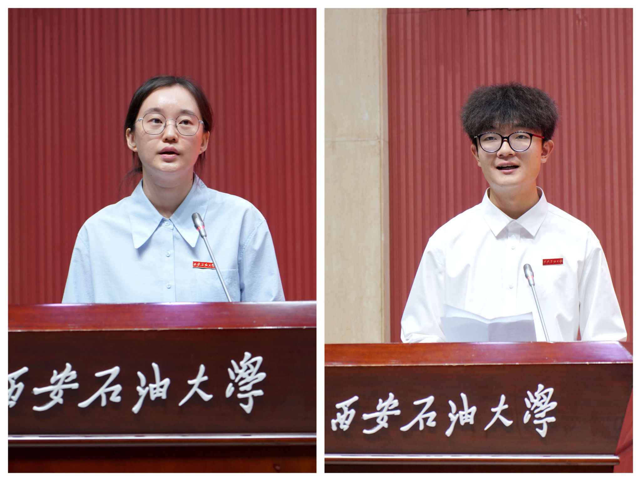教師代表、陜西省青年拔尖人才、石油工程學(xué)院劉婭菲老師作交流發(fā)言,學(xué)生代表、地球科學(xué)與工程學(xué)院杜佳偉同學(xué)獻(xiàn)詞。