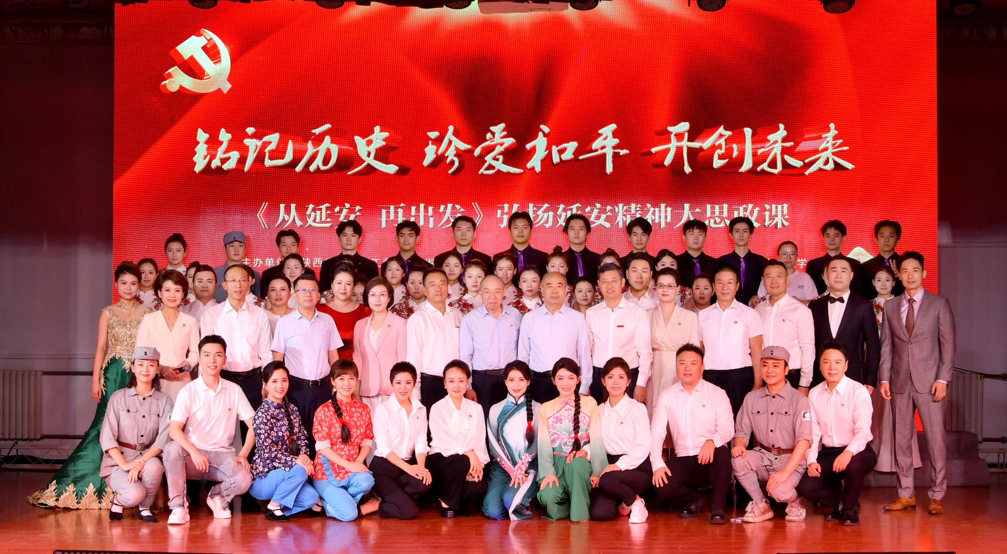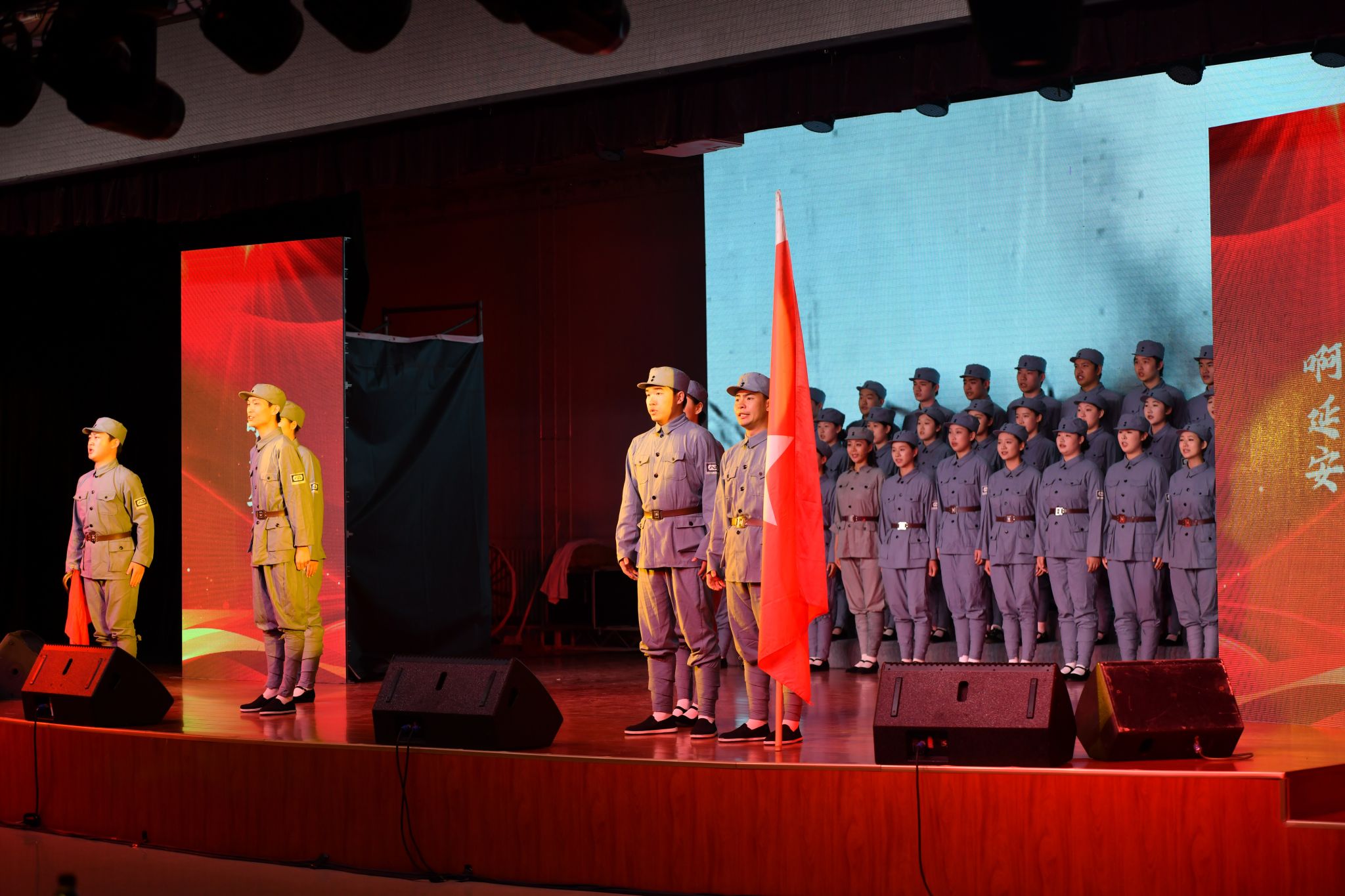 活動(dòng)分為序幕、信念之路、思想之炬、為民之心、奮進(jìn)之力四大篇章、尾聲,包括《延安頌》《延安窯洞有馬列主義》《全心全意為人民服務(wù)的楷?!贰额I(lǐng)航》等8個(gè)節(jié)目,并由4位知名專家分別圍繞“為什么中國的希望在延安”“為什么延安窯洞有馬列主義”“為什么要將為人民服務(wù)作為黨的根本宗旨寫入《中國共產(chǎn)黨章程》”“為什么習(xí)近平總書記囑托無論將來物質(zhì)生活多么豐富,自力更生艱苦奮斗的精神一定不能丟”等核心問題,進(jìn)行深入淺出的理論闡釋,實(shí)現(xiàn)了文藝表達(dá)與思想教育的深度融合,活動(dòng)現(xiàn)場莊重?zé)崃遥笠缰鴿夂竦募t色氛圍。其中,我校音樂系教師李強(qiáng)、田立分別演繹了《領(lǐng)航》、《山丹丹開花紅艷艷》歌曲,我校合唱團(tuán)以激昂的歌聲合唱了《延安頌》《領(lǐng)航》等曲目,傳遞出新時(shí)代青年繼承革命傳統(tǒng)、勇?lián)姑膱?jiān)定信念。