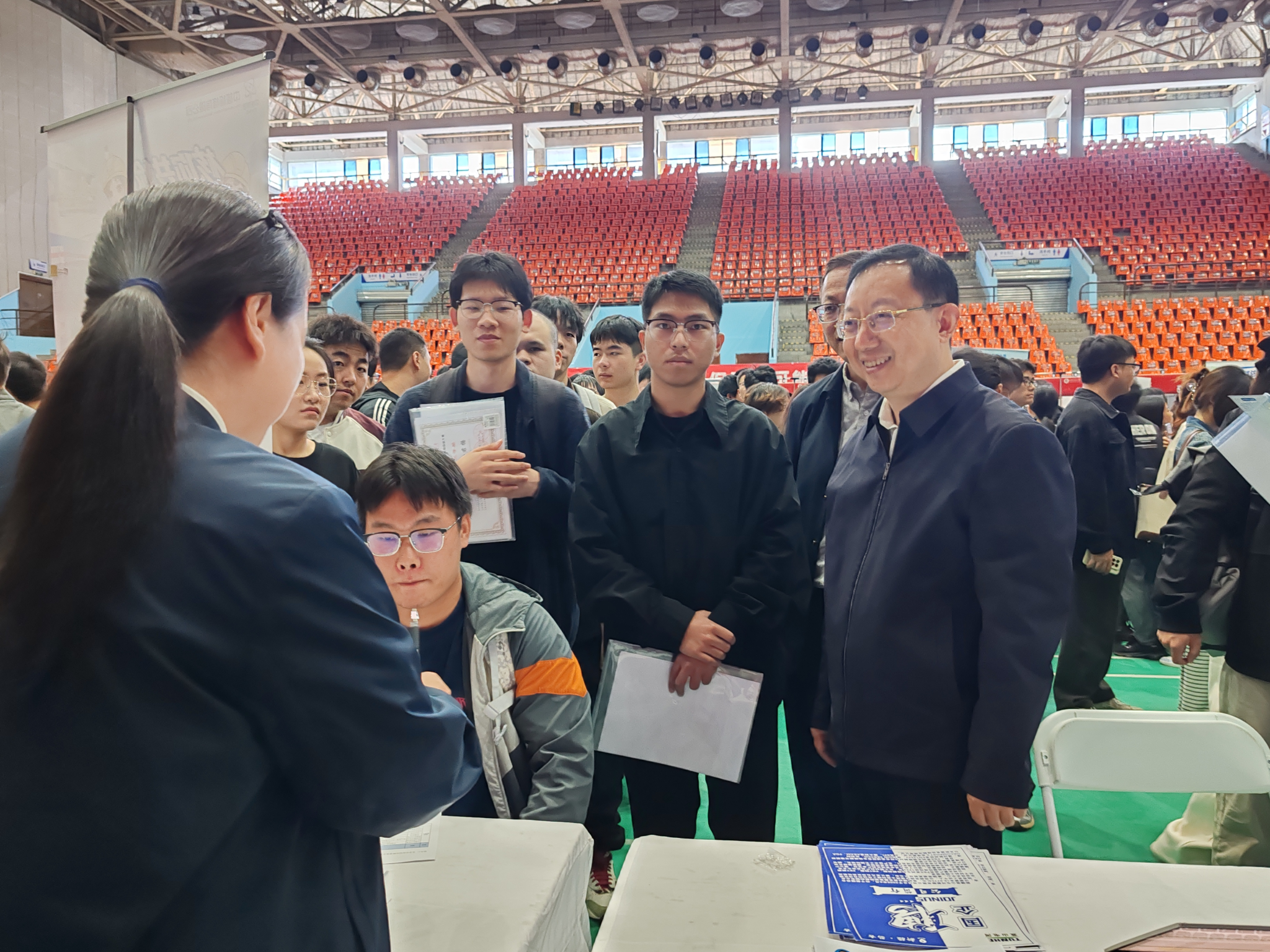 調(diào)研過程中,種宇宏逐一走訪行業(yè)重點(diǎn)用人單位展位,與企業(yè)招聘負(fù)責(zé)人及校友親切交談。他詳細(xì)詢問企業(yè)招聘需求、崗位要求、薪資福利及行業(yè)發(fā)展情況,了解企業(yè)對(duì)我校畢業(yè)生專業(yè)能力、實(shí)踐素養(yǎng)的綜合評(píng)價(jià),并向企業(yè)介紹我校學(xué)科建設(shè)、人才培養(yǎng)特色及2026屆畢業(yè)生規(guī)模與專業(yè)分布情況。希望校企雙方以人才供需對(duì)接為窗口,進(jìn)一步深化校企合作,建立長(zhǎng)期穩(wěn)定的人才輸送與聯(lián)合培養(yǎng)機(jī)制,共同為行業(yè)發(fā)展培育優(yōu)質(zhì)人才。在與畢業(yè)生交流時(shí),他關(guān)切詢問同學(xué)們的求職意向、目標(biāo)崗位及面試進(jìn)展,傾聽大家在求職過程中遇到的困惑與需求。他叮囑同學(xué)們要結(jié)合自身專業(yè)優(yōu)勢(shì)與職業(yè)規(guī)劃,理性選擇崗位,主動(dòng)與用人單位溝通,同時(shí)鼓勵(lì)廣大畢業(yè)生到西部去、到基層去,到祖國(guó)最需要的地方建功立業(yè),強(qiáng)調(diào)要樹立“先就業(yè)、再擇業(yè)”的正確就業(yè)觀,積極把握就業(yè)機(jī)遇,在統(tǒng)籌社會(huì)價(jià)值的過程中實(shí)現(xiàn)個(gè)人價(jià)值。