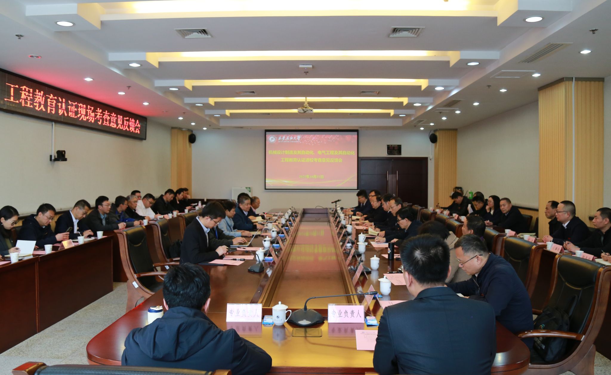 針對工程教育認(rèn)證工作,王進富提出,一是提高站位、深化認(rèn)識,全面認(rèn)領(lǐng)問題清單。全校上下要高度重視認(rèn)證整改工作,認(rèn)真學(xué)習(xí)、深刻領(lǐng)會專家組的反饋意見,系統(tǒng)梳理、逐項分析,建立詳實明晰的“問題清單”“任務(wù)清單”和“責(zé)任清單”。相關(guān)學(xué)院和職能部門要主動擔(dān)當(dāng),從思想根源、制度層面、執(zhí)行環(huán)節(jié)查找原因,確保問題認(rèn)領(lǐng)到位、認(rèn)識深化到位。二是聚焦重點、精準(zhǔn)施策,扎實推進整改落實。學(xué)校將堅持問題導(dǎo)向和目標(biāo)導(dǎo)向相結(jié)合,制定科學(xué)、系統(tǒng)、可操作的整改方案。重點圍繞建立健全持續(xù)改進機制、優(yōu)化更新課程體系與教學(xué)內(nèi)容、強化培養(yǎng)學(xué)生解決復(fù)雜工程問題能力、有效評價畢業(yè)要求達成情況、切實提升教師工程實踐能力與教學(xué)水平等關(guān)鍵環(huán)節(jié),拿出硬招實招,明確時間表、路線圖和責(zé)任人。學(xué)校將在政策、經(jīng)費、資源等方面給予充分保障,確保整改措施落地生根、取得實效。三是舉一反三、以點帶面,建立改進長效機制。此次認(rèn)證不僅是對兩個參評專業(yè)的全面體檢,也是對全校各專業(yè)建設(shè)的有力促進。我們將把此次認(rèn)證的成果和整改的經(jīng)驗,輻射到全校其他專業(yè)建設(shè)中。進一步強化“OBE”理念在全校范圍內(nèi)的共識和運用,完善基于評價反饋的持續(xù)改進閉環(huán)機制,推動學(xué)校人才培養(yǎng)模式改革、師資隊伍優(yōu)化、質(zhì)量保障體系完善等各項工作再上新臺階,全面提升我校本科教學(xué)質(zhì)量和核心競爭力。四是堅守特色、服務(wù)需求,努力培養(yǎng)高素質(zhì)工程人才。作為一所以石油石化為特色的高校,我們將繼續(xù)立足行業(yè)、服務(wù)地方、面向全國。兩個專業(yè)要更加緊密地結(jié)合國家能源發(fā)展戰(zhàn)略和智能制造、綠色低碳等產(chǎn)業(yè)發(fā)展方向,進一步凝練專業(yè)特色,優(yōu)化人才培養(yǎng)目標(biāo),強化學(xué)生工程實踐能力、創(chuàng)新精神和家國情懷的培養(yǎng),努力培養(yǎng)更多能夠適應(yīng)并引領(lǐng)未來產(chǎn)業(yè)發(fā)展的高素質(zhì)工程技術(shù)人才,為行業(yè)轉(zhuǎn)型和地區(qū)經(jīng)濟社會發(fā)展貢獻西石大的智慧和力量。