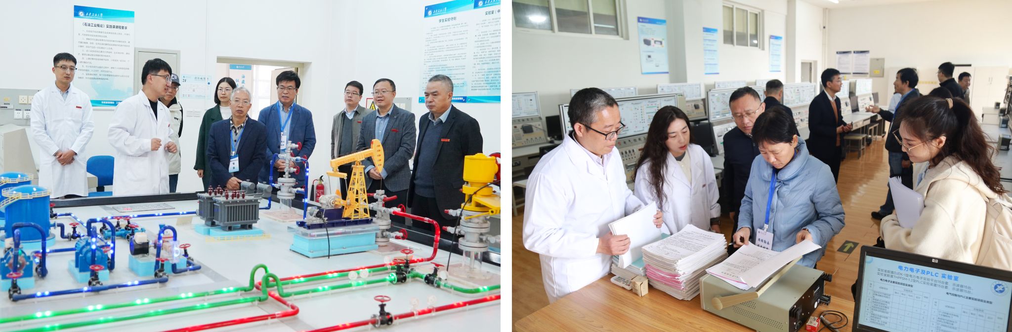 見面會結(jié)束后,專家組分組考查了鐵人王進喜紀(jì)念館、校史館、圖書館、工程訓(xùn)練中心,以及機械設(shè)計制造及其自動化和電氣工程及其自動化專業(yè)實驗室,并就相關(guān)問題與專業(yè)教師進行了溝通和交流。