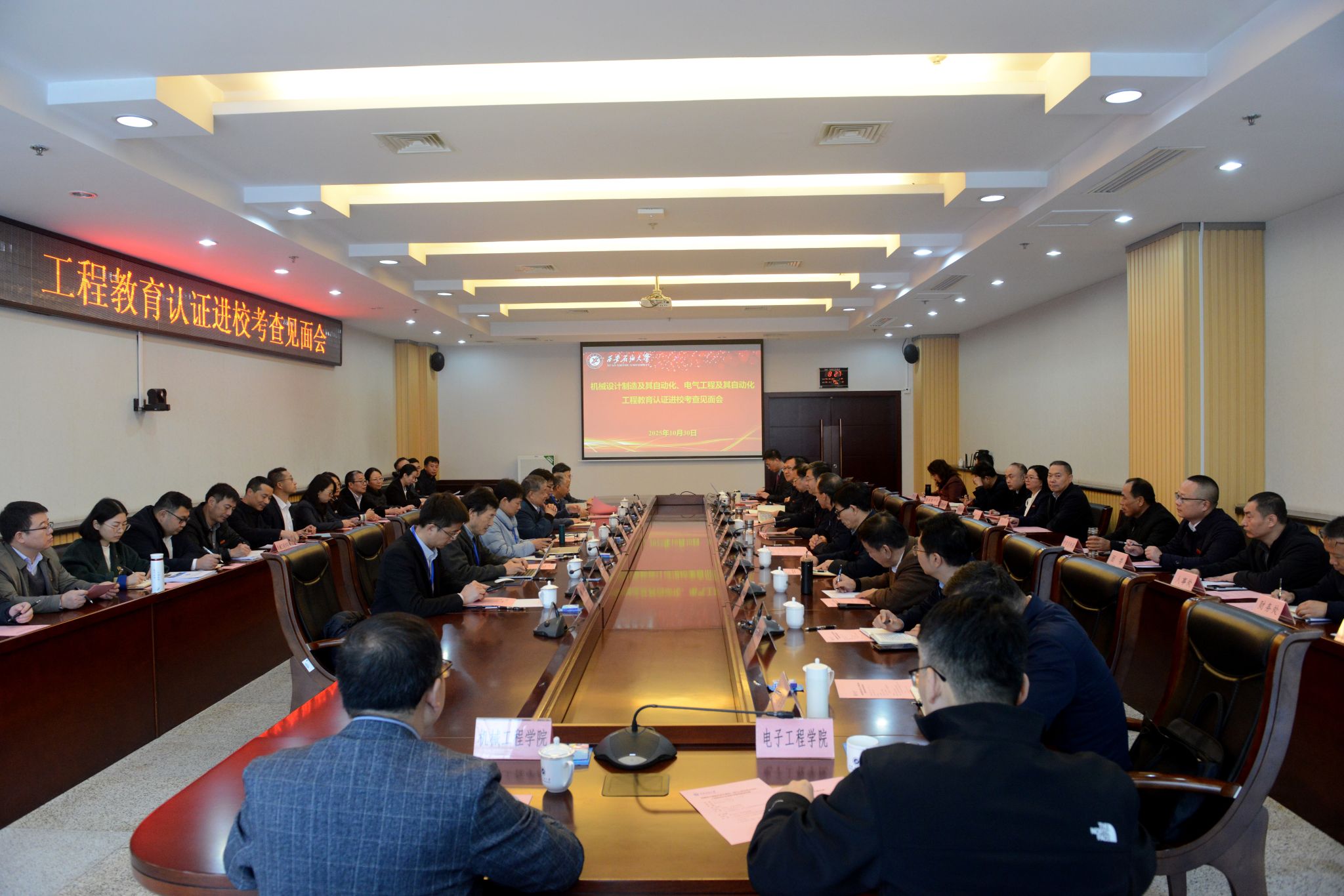 30日上午,考查專家組見面會在鄠邑校區(qū)第二會議室舉行??疾閷<医M聯(lián)合組長張星臣教授,專家組成員北京理工大學(xué)唐水源教授、湖南大學(xué)譚陽紅教授、西南交通大學(xué)田懷文教授、南京南瑞繼保電氣有限公司黃健教授、山東理工大學(xué)趙繼成教授、北京化工大學(xué)魏杰教授,校長王進富,副校長張君濤、種宇宏出席會議。校本科督導(dǎo)專家組組長,相關(guān)職能部門和教輔單位負(fù)責(zé)人,機械工程學(xué)院、電子工程學(xué)院領(lǐng)導(dǎo)班子成員,機械設(shè)計制造及其自動化、電氣工程及其自動化專業(yè)負(fù)責(zé)人以及專業(yè)教師代表參加了見面會。