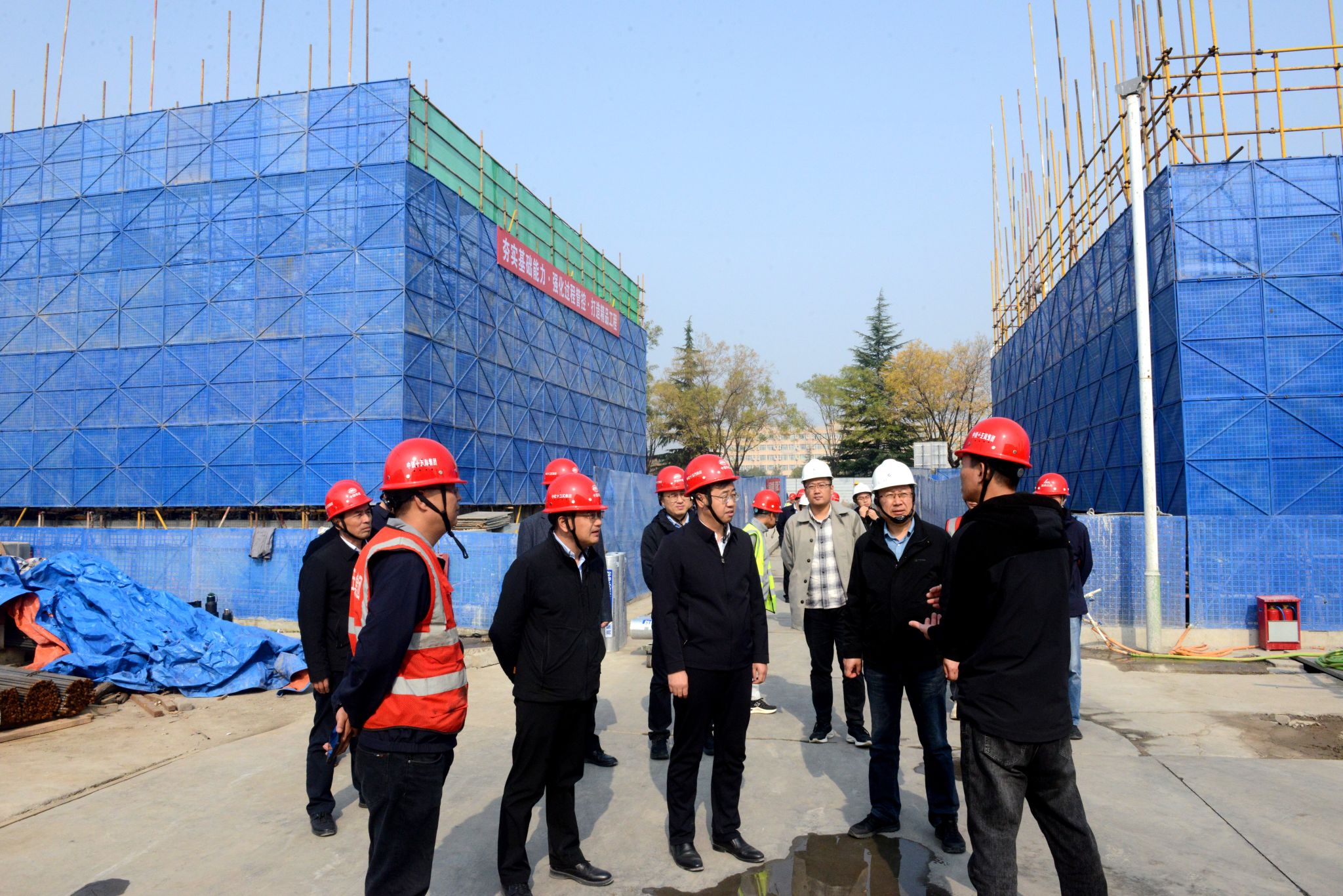 王進(jìn)富一行先后調(diào)研綠色低碳能源綜合實(shí)驗(yàn)(實(shí)訓(xùn))中心,圖書館6-8層,21#、22#學(xué)生宿舍樓和綜合服務(wù)一條街等項(xiàng)目施工(修繕)現(xiàn)場(chǎng),詳細(xì)了解各項(xiàng)目進(jìn)展情況,聽(tīng)取施工單位負(fù)責(zé)人介紹,并召開(kāi)現(xiàn)場(chǎng)辦公會(huì),協(xié)調(diào)解決項(xiàng)目推進(jìn)問(wèn)題。
