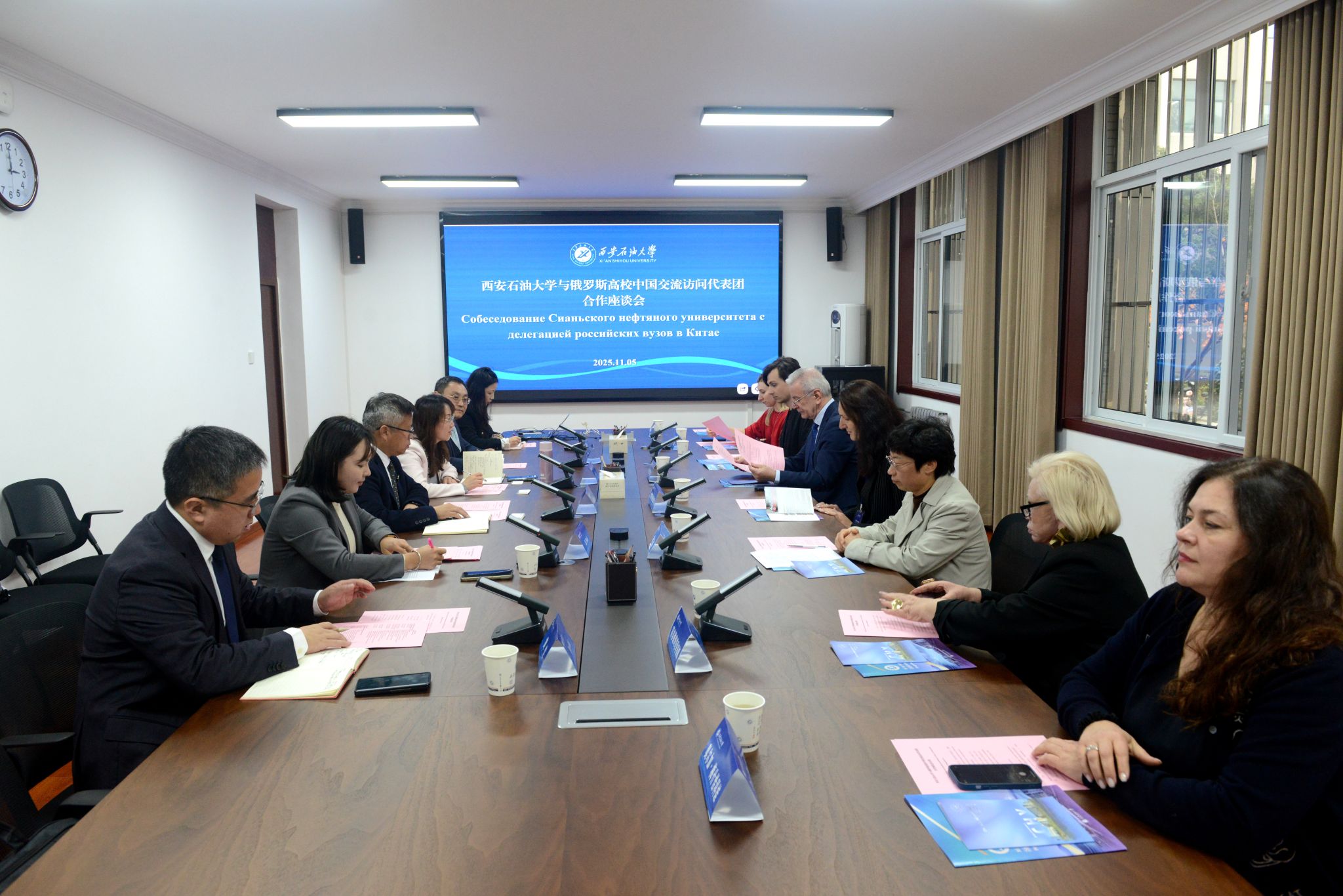 11月5日下午,俄羅斯后貝加爾邊疆區(qū)高等教育部部長(zhǎng)娜塔利婭·維庫洛娃率俄羅斯高校中國交流訪問代表團(tuán)一行7人來我校交流訪問。合作座談會(huì)在鄠邑校區(qū)辦公樓第四會(huì)議室舉行,我校副校長(zhǎng)張驍勇、國際合作與交流處負(fù)責(zé)人及工作人員參會(huì)。