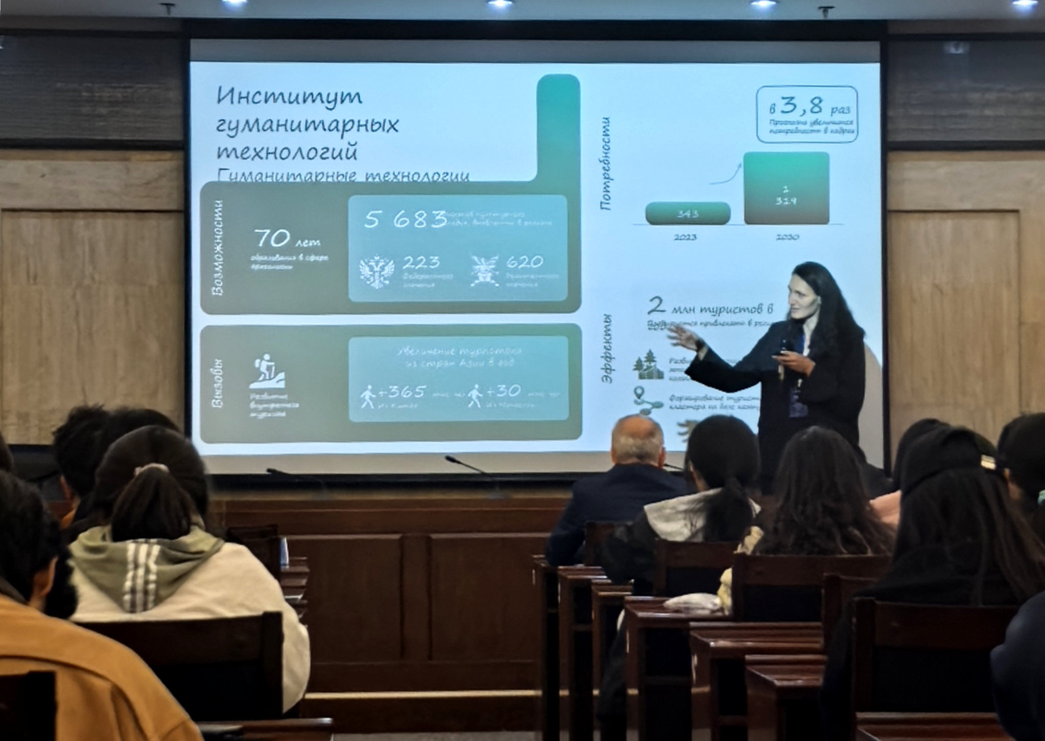 娜塔利婭·維庫洛娃在題為《俄羅斯高等教育發(fā)展研究》的學(xué)術(shù)報(bào)告中,通過詳實(shí)的空間地理標(biāo)識(shí)方法,介紹了俄羅斯高等教育的發(fā)展現(xiàn)狀和典型特征。此后聚焦外貝加爾邊疆區(qū),從教育、產(chǎn)業(yè)、區(qū)域發(fā)展等多維分析視角,展示該地區(qū)基于資源稟賦形成高等教育特色模式的發(fā)展路徑。