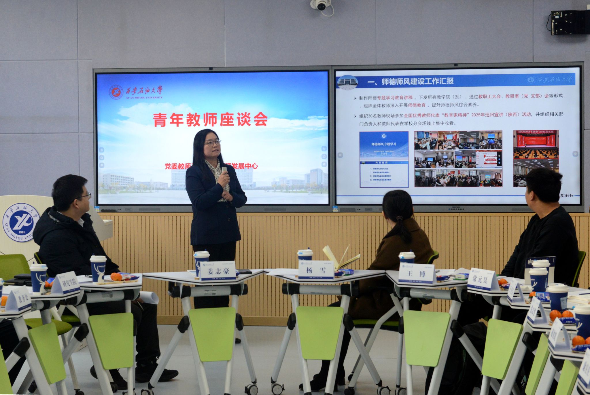 武曉朦以10月24日教育部等六部門聯(lián)合印發(fā)的《關(guān)于加強(qiáng)新時代高校青年教師隊伍建設(shè)的指導(dǎo)意見》為遵循,圍繞師德師風(fēng)建設(shè)與教師發(fā)展工作,緊密結(jié)合學(xué)校辦學(xué)定位與青年教師隊伍建設(shè)實際,從強(qiáng)化制度建設(shè)、健全長效機(jī)制,筑牢思想根基、用心培育師德,選樹先進(jìn)典型、突出正面引領(lǐng),開展警示教育、強(qiáng)化師德監(jiān)督等方面匯報了師德師風(fēng)建設(shè)工作情況;從健全教師發(fā)展工作機(jī)制、強(qiáng)化青年教師培養(yǎng)工作、創(chuàng)新開展教師發(fā)展培訓(xùn)等方面匯報了教師發(fā)展工作情況,系統(tǒng)梳理了近年來學(xué)校在師德師風(fēng)建設(shè)與教師發(fā)展的工作舉措、實踐探索與階段性成效。