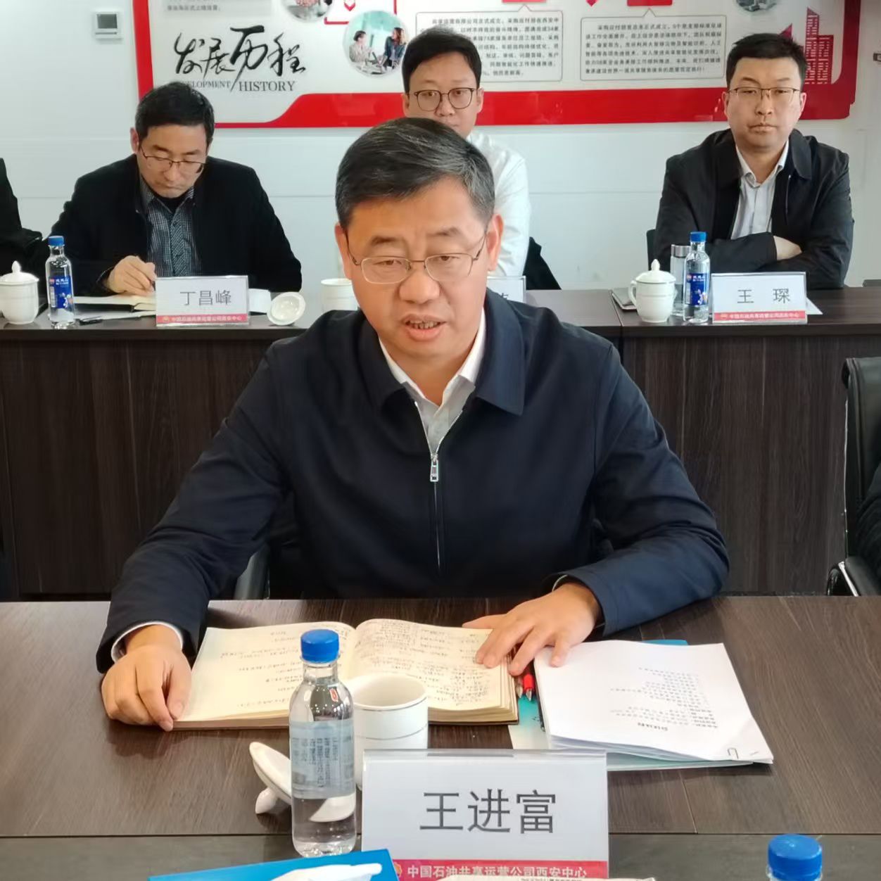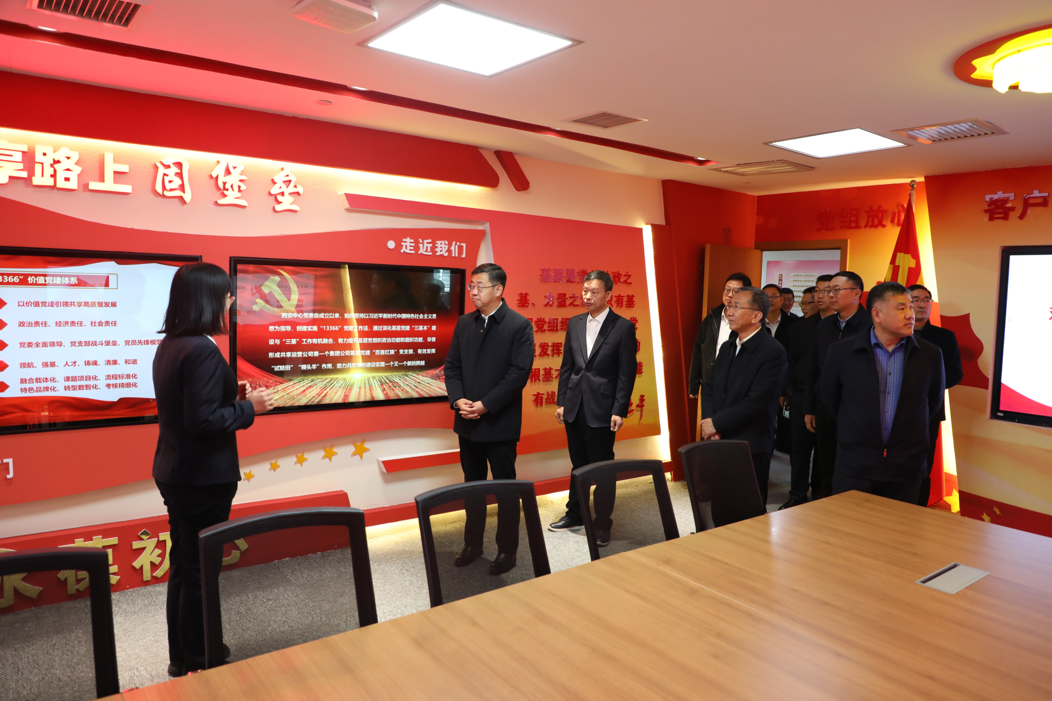 會(huì)前,王進(jìn)富一行參觀了西安中心黨建活動(dòng)室、共享建設(shè)文化墻以及數(shù)字化員工區(qū)。