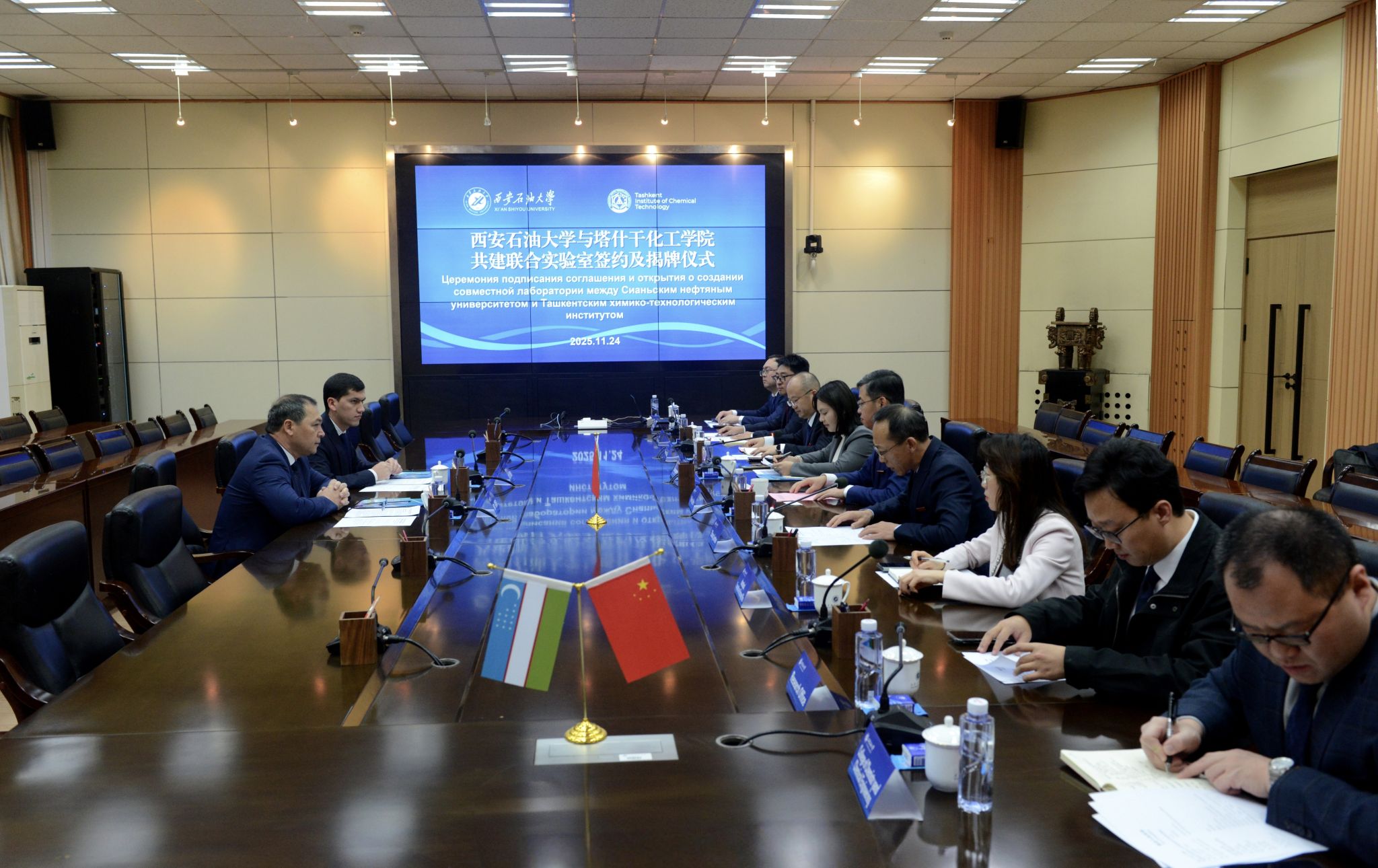 會(huì)上,兩校校長(zhǎng)共同簽署《西安石油大學(xué)與塔什干化工學(xué)院共建資源利用與環(huán)境保護(hù)聯(lián)合實(shí)驗(yàn)室協(xié)議》,并現(xiàn)場(chǎng)為“資源利用與環(huán)境保護(hù)聯(lián)合實(shí)驗(yàn)室”揭牌。