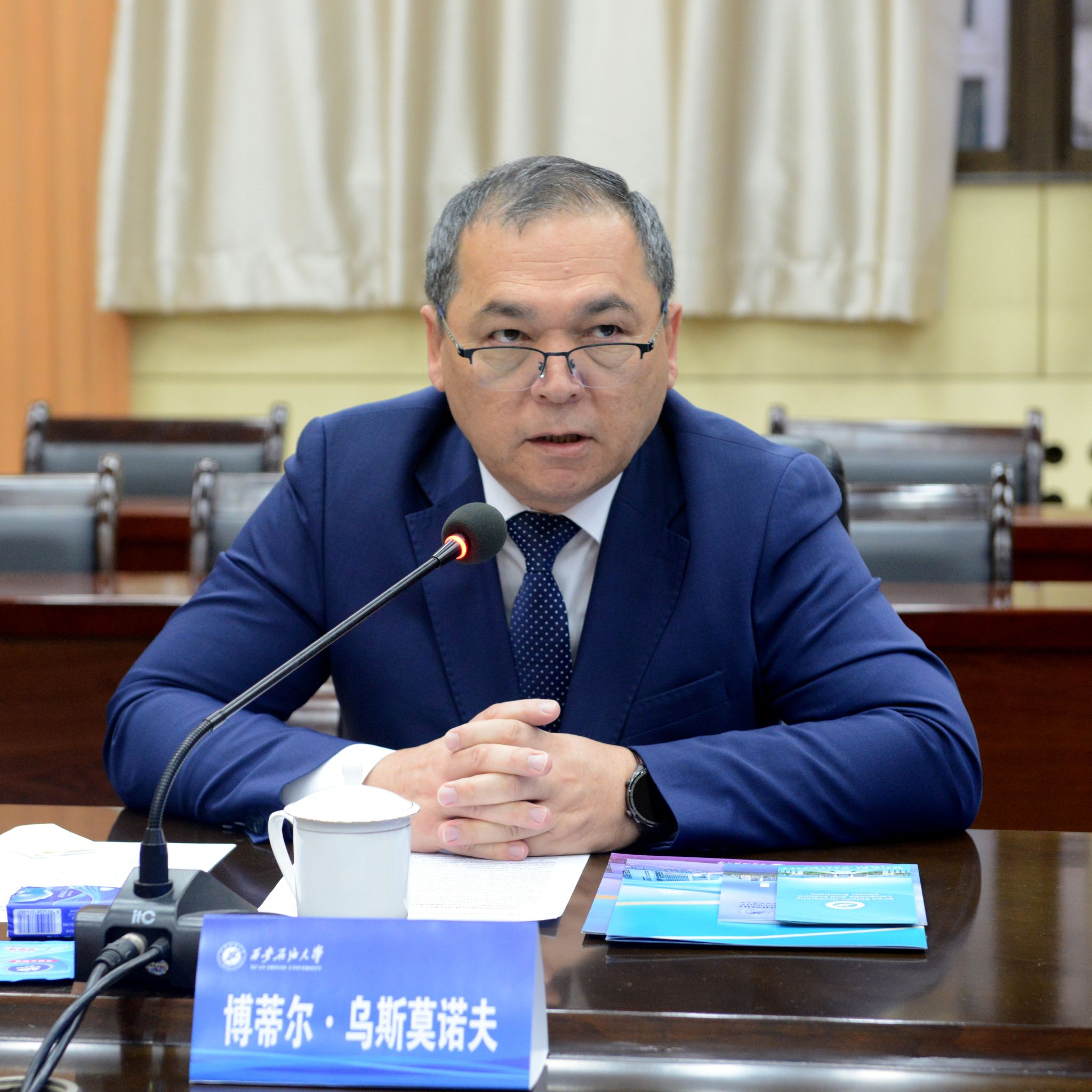 王進(jìn)富首先對(duì)博蒂爾·烏斯莫諾夫一行來(lái)訪表示熱烈歡迎,并簡(jiǎn)要介紹了學(xué)校學(xué)科特色及當(dāng)前中亞國(guó)際合作辦學(xué)情況。他表示,兩校學(xué)科優(yōu)勢(shì)與戰(zhàn)略愿景高度契合,未來(lái)可在能源化工、資源利用與環(huán)境保護(hù)等方向?qū)崿F(xiàn)深度合作。愿雙方共建聯(lián)合實(shí)驗(yàn)室成為中烏教育合作的新亮點(diǎn),為雙方科研創(chuàng)新與人才培養(yǎng)提供更好平臺(tái)。