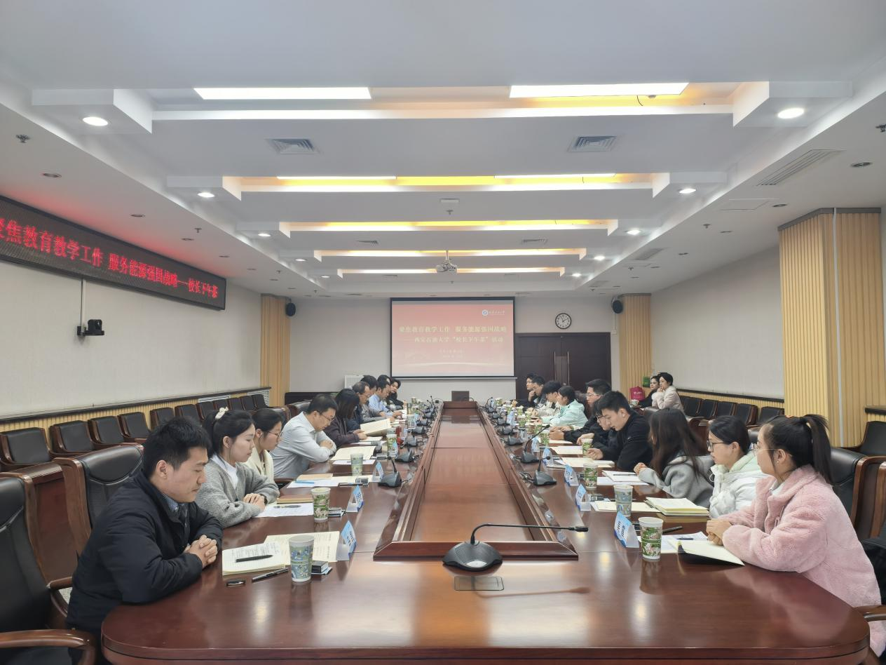 本次活動以“聚焦教育教學工作,服務能源強國戰(zhàn)略”為主題,來自各院系的10名本科生代表和9名研究生代表圍繞主題、暢所欲言,與老師們共話成長成才。張君濤首先介紹了活動設立初衷,鼓勵同學們在輕松的氛圍中真實表達意見建議,共同關注學校改革與發(fā)展。他表示,學校將堅持開放辦學,充分采納學生意見建議,推動各項舉措落地落實。