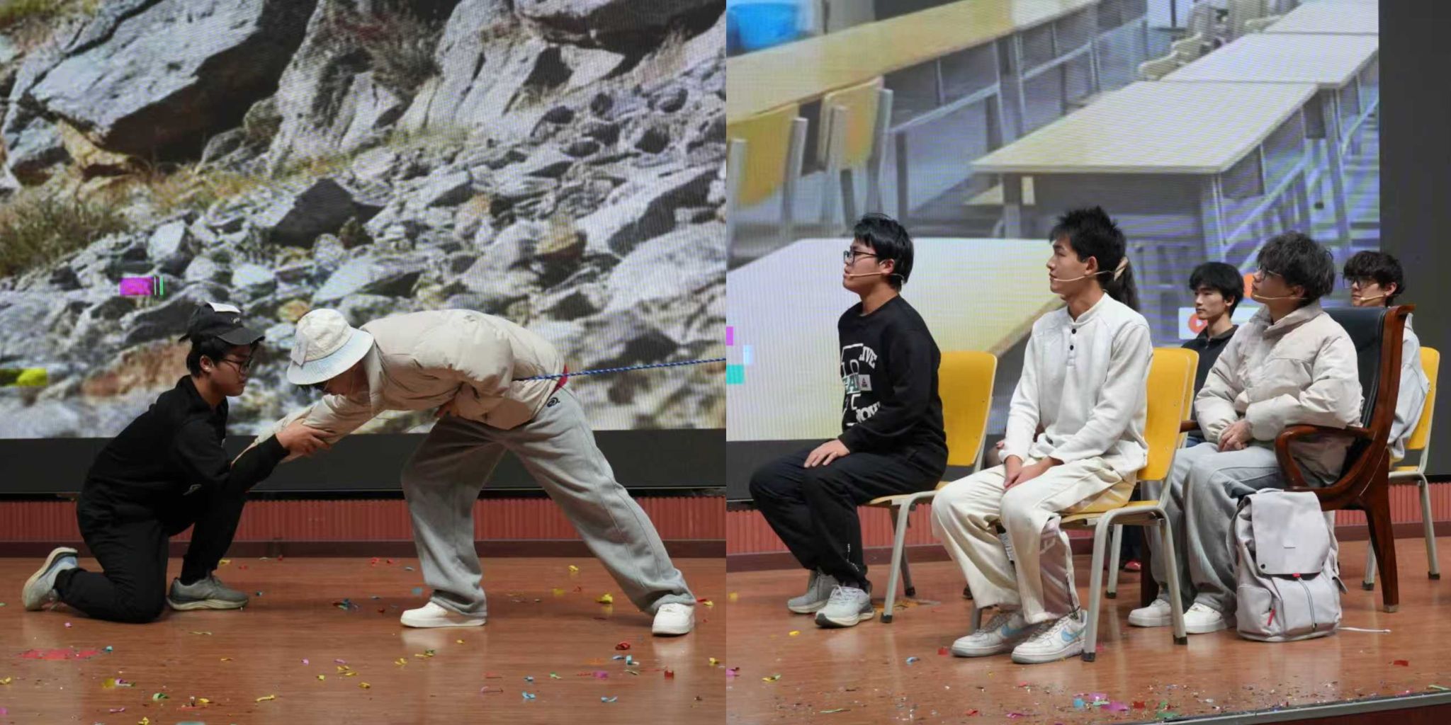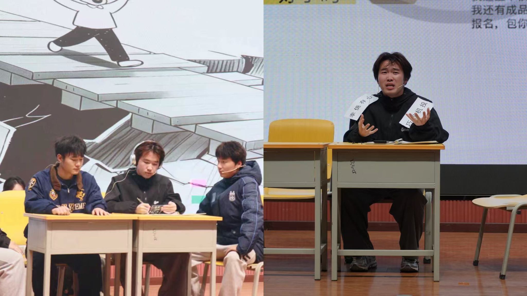 本次比賽共有16個學(xué)院17支隊伍報名,經(jīng)過前期的初賽后共有8支學(xué)院代表隊進(jìn)入決賽。八部作品以青春為底色,將大學(xué)生成長中的困惑、溫暖與蛻變搬上舞臺,在歡笑與動容的交織中,精彩得勾勒出當(dāng)代青年的心靈圖譜。《心之所向,素履以往》聚焦大學(xué)生遇學(xué)業(yè)就業(yè)壓力陷入內(nèi)耗的熱點(diǎn)問題,演繹以情緒為核心,不斷闖關(guān),解開心結(jié),逐步自我接納與成長的歷程?!秷允嘏c誘禍》則圍繞大學(xué)生因保研問題誤入歧途走偏方向,在輔導(dǎo)員和同學(xué)的幫助下重拾信心,努力前進(jìn)的故事?!秲?yōu)秀標(biāo)簽的“詛咒”》以大學(xué)生面臨的“完美主義”心理枷鎖為引,展示了林薇這朵“優(yōu)秀玫瑰”如何掙脫刻板標(biāo)簽,尋回真實自我。《金繕》關(guān)注當(dāng)代大學(xué)生生活中的煩惱重重,以金繕喻人生,傳遞著青春總有磕絆,裂痕也并非缺憾的信條,金繕的哲思里,藏著關(guān)于成長的答案,直面青春挫折,傷痕終將化作成長金印。《“紙枷”》集中于思考隨著當(dāng)下各種AI軟件興起,大學(xué)生在學(xué)術(shù)規(guī)范與論文寫作中,如何正確使用AI軟件,回應(yīng)社會所關(guān)心的問題?!斗俏抑摇吠ㄟ^性格迥異的兩位新生互換處事方式,因不同碰撞,又因“成為彼此”而磨合,最終尋得了成長的平衡點(diǎn)?!稛艋鹬孛鳌逢P(guān)注大學(xué)生“討好型”問題,以燈火喻本心,直面期待枷鎖,將疲憊化作擁抱自我的溫暖光痕。巖層斷層藏著地球密碼,人心隔閡藏著蛻變契機(jī),《斷層上的橋梁》講述了主角因?qū)W習(xí)問題被孤立,最終憑借自身努力和朋友幫助成功化解難題并取得了進(jìn)步的故事。