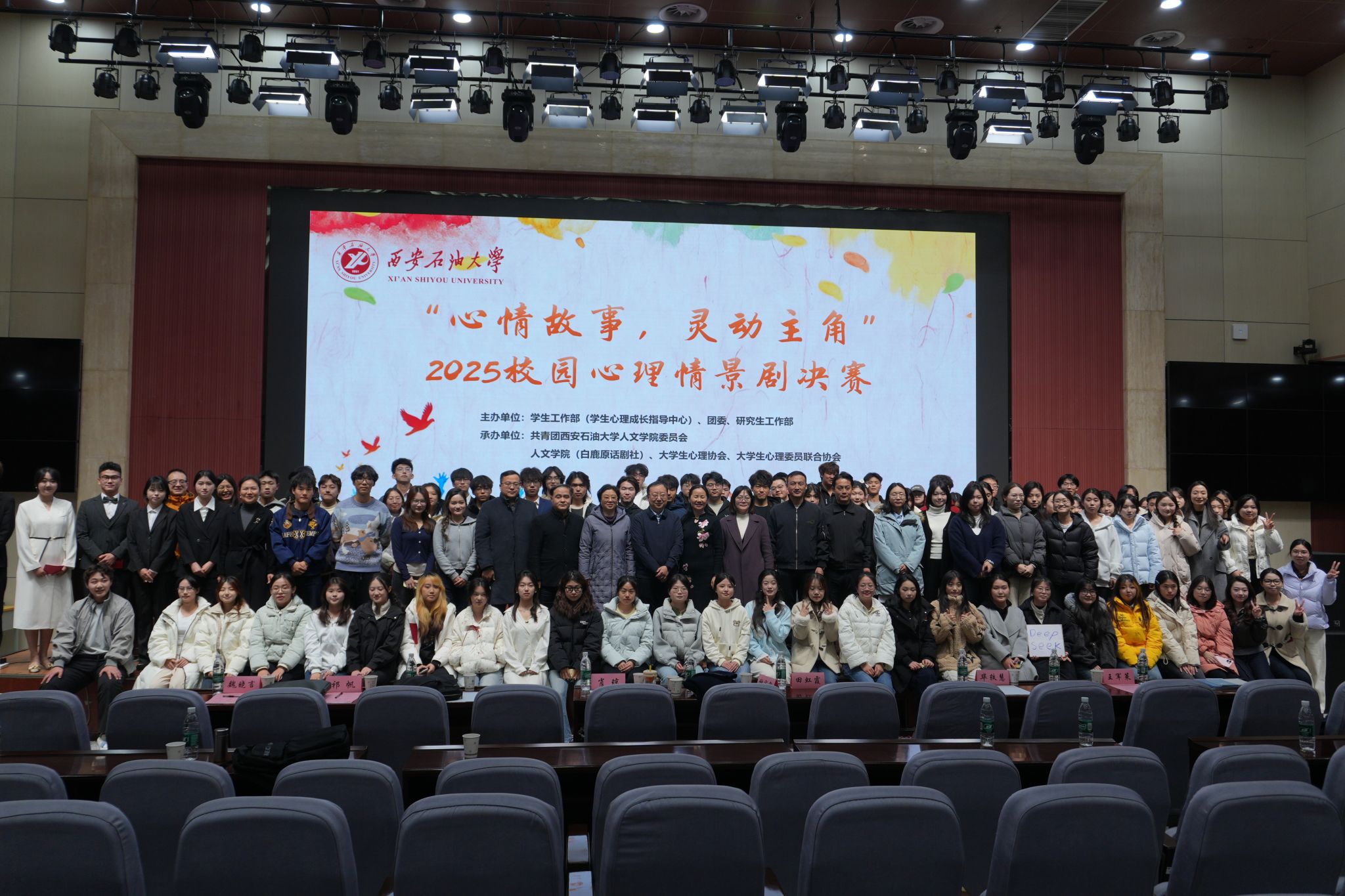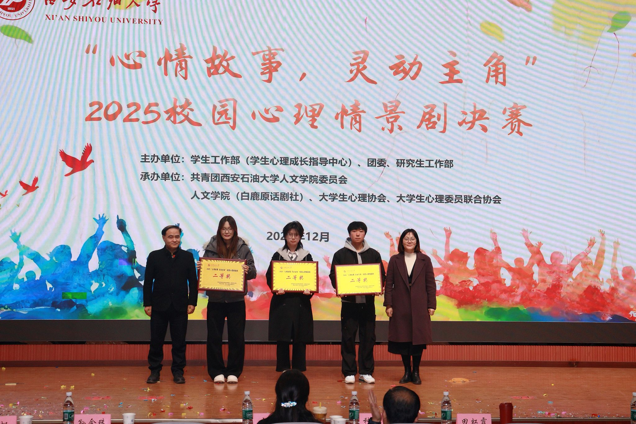 12月15日晚,我校2025年“心情故事 靈動主角”心理情景劇比賽在鄠邑校區(qū)弘石學(xué)術(shù)報告廳舉辦。副校長種宇宏出席活動并致辭,相關(guān)職能處室、院(系)負(fù)責(zé)人及300余名學(xué)生觀看了比賽。