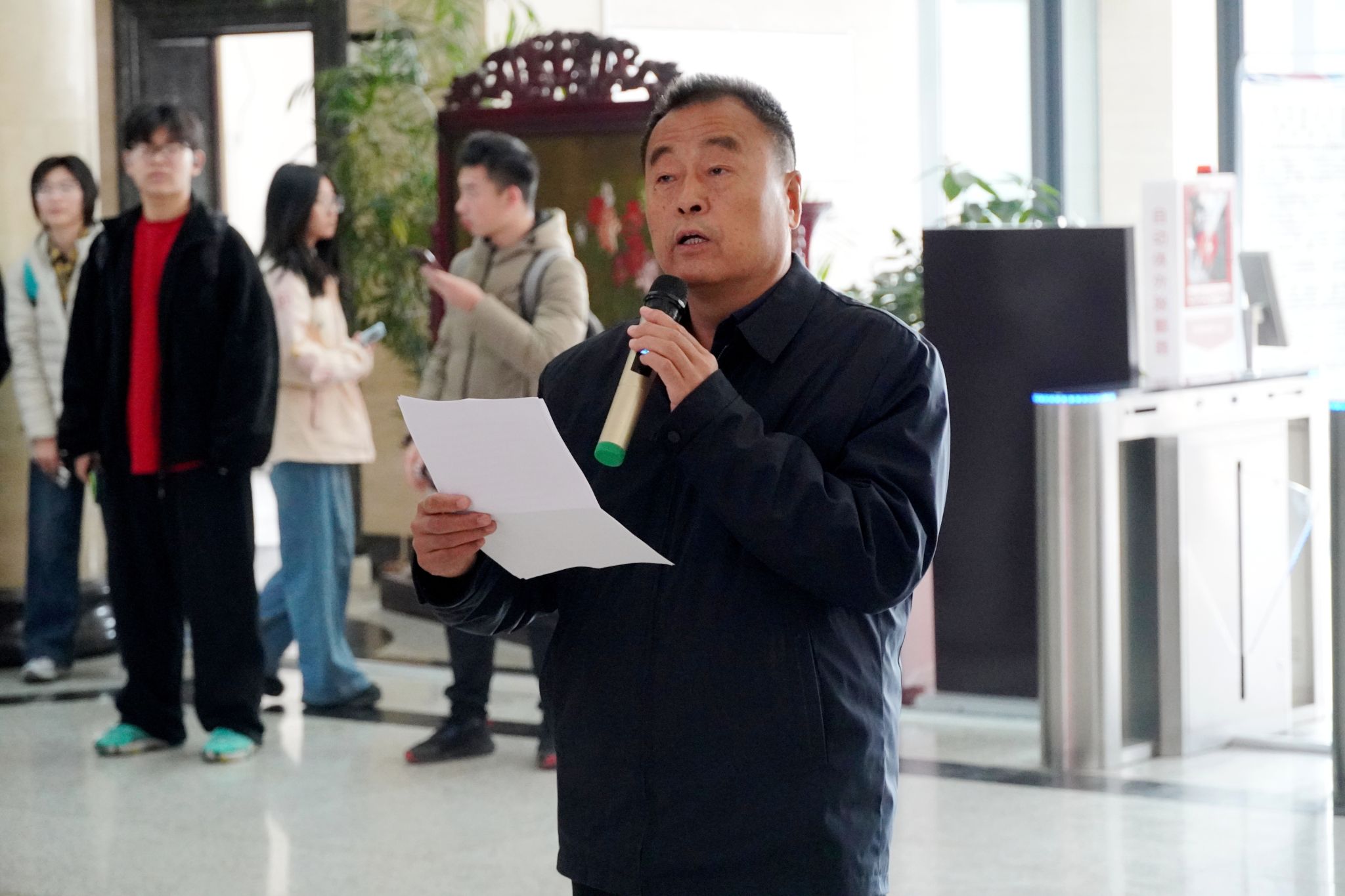 12月18日上午,“墨香迎新歲師生共華章”2026迎元旦師生書法聯(lián)誼會在鄠邑校區(qū)圖書館舉行,此次活動由圖書館、離退休工作處、人文學(xué)院、大學(xué)生書法協(xié)會聯(lián)合舉辦。校黨委副書記程永清出席活動并致辭,相關(guān)職能部門和院(系)負(fù)責(zé)人、校老年書畫協(xié)會和退休老教師代表應(yīng)邀出席,我校大學(xué)生書畫協(xié)會全體會員、人文學(xué)院學(xué)生代表參加了活動,活動由圖書館館長李濤主持。