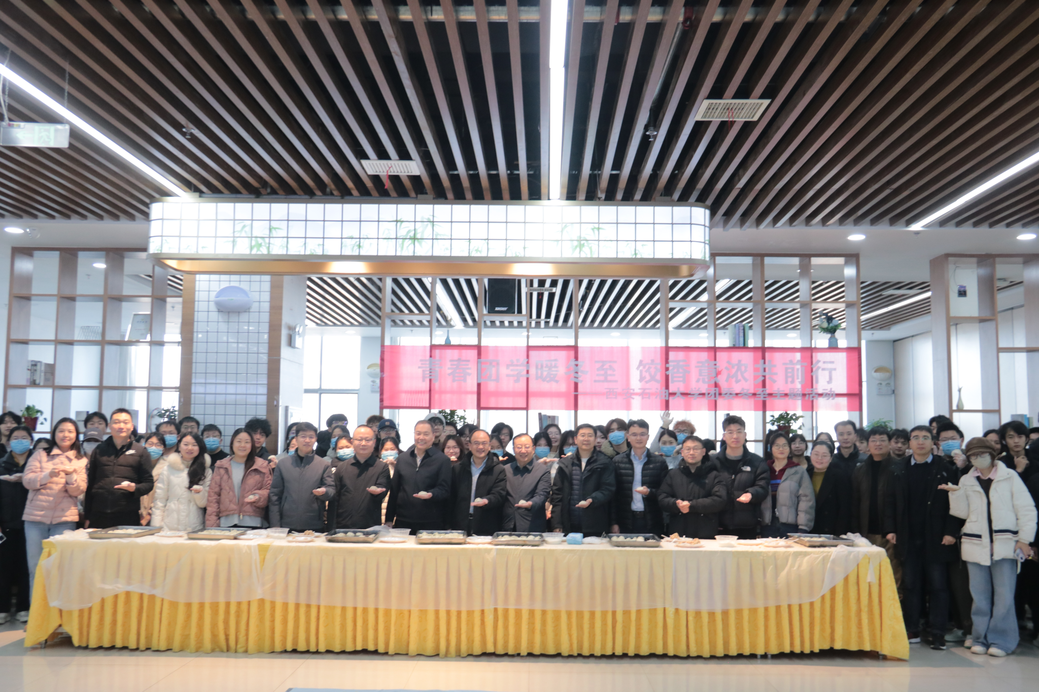 12月19日中午,學(xué)校在鄠邑校區(qū)東區(qū)食堂舉辦“青春團(tuán)學(xué)暖冬至,餃香意濃共前行”團(tuán)學(xué)干部冬至主題活動。副校長趙健、種宇宏親臨活動現(xiàn)場,黨委辦公室(校長辦公室)、黨委學(xué)生工作部、校團(tuán)委主要負(fù)責(zé)人,各院(系)團(tuán)委(團(tuán)總支)書記,校學(xué)生會(研究生會)主席團(tuán)成員、部門負(fù)責(zé)人,校團(tuán)委各中心負(fù)責(zé)人、各直屬社團(tuán)負(fù)責(zé)人齊聚一堂,共同體驗(yàn)包餃子、品餃子的傳統(tǒng)習(xí)俗,共享溫馨時光,暢談師生情誼。