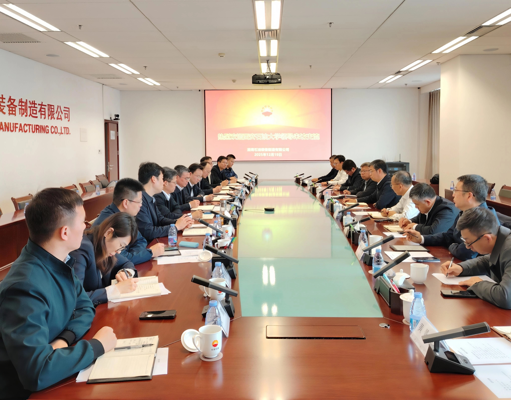 在中石油渤海石油裝備制造有限公司走訪期間,王進富一行與公司總經理苗勇,紀委書記劉強(我校勞2001屆校友),總會計師史夢星(我校會計1999屆校友)、總工程師馮春及相關職能部門負責同志和校友代表座談交流。王進富向公司對學校畢業(yè)生的選聘和培養(yǎng)表示衷心感謝。他談到,近年來學校緊密聚焦國家能源戰(zhàn)略和經濟社會發(fā)展,精準對接石油石化行業(yè)企業(yè)實際需求,積極整合學科優(yōu)勢和人才資源,持續(xù)推動科研范式改革,全方位參與企業(yè)技術攻關,解決企業(yè)技術難題和行業(yè)痛點。他表示,學校踐行服務行業(yè)初心,持續(xù)優(yōu)化專業(yè)學科布局,完善人才培養(yǎng)體系,深化石油精神教育與專業(yè)教育融合育人,全力以赴為能源行業(yè)高質量發(fā)展筑牢人才根基。希望雙方以本次座談交流為契機,建立健全常態(tài)化協(xié)同創(chuàng)新機制,充分發(fā)揮各自優(yōu)勢,聚焦“卡脖子”技術攻關與產業(yè)轉型升級需求,在資源共享、項目共擔、技術共研、人才共育、平臺共建、未來共贏等方面精準發(fā)力,聯(lián)合組建創(chuàng)新團隊、申報重大科研項目、共建產學研融合平臺,共同培養(yǎng)適應國家能源戰(zhàn)略需求的創(chuàng)新人才,攜手為實現(xiàn)能源裝備自主自強、服務國家能源安全戰(zhàn)略、助力制造強國建設書寫校企協(xié)同發(fā)展新篇章。