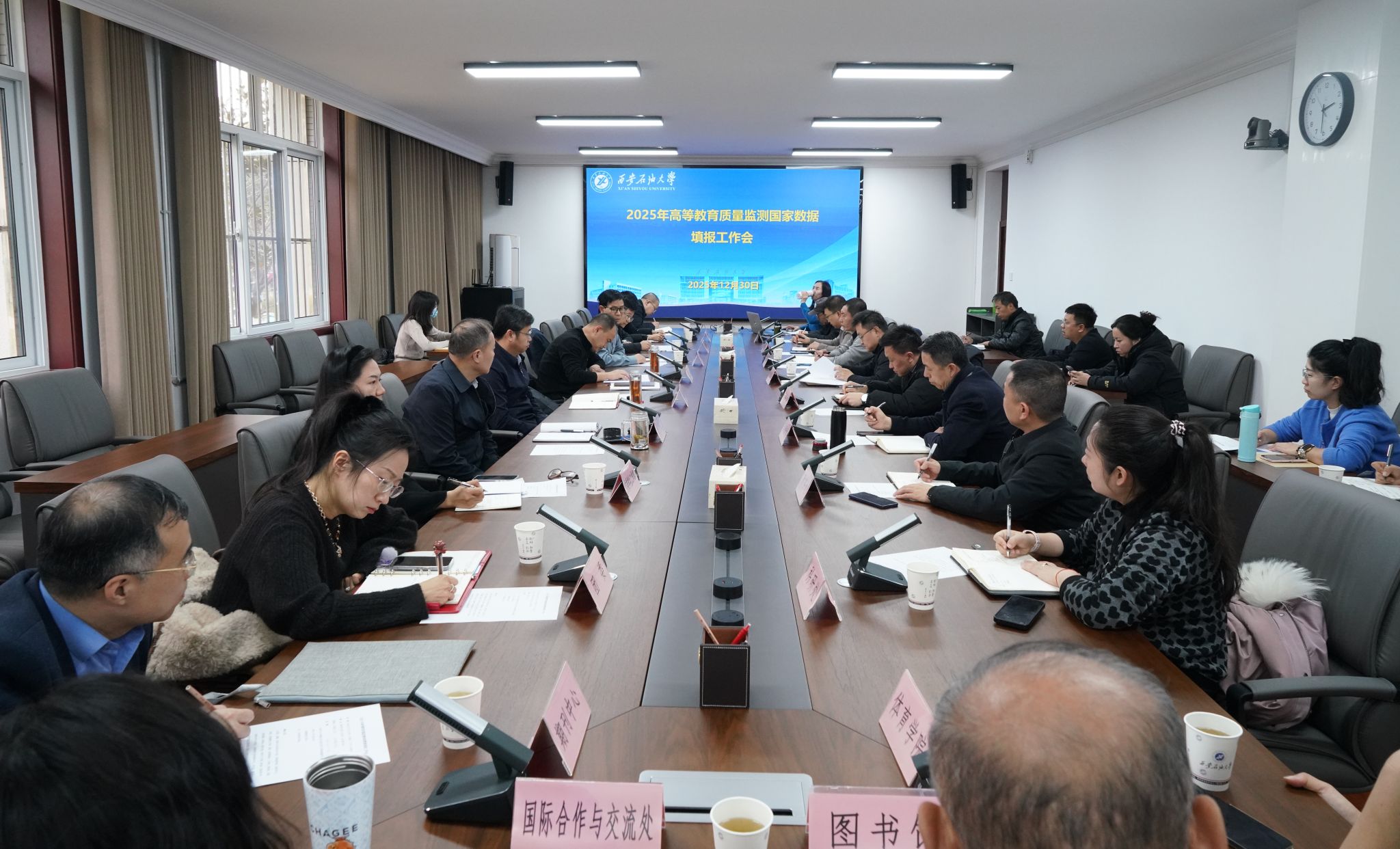 12月30日下午,學校在鄠邑校區(qū)第三會議室召開2025年高等教育質量監(jiān)測國家數(shù)據填報工作會。校長王進富、副校長趙健出席會議,黨委辦公室(校長辦公室)、黨委組織部、黨委學生工作部、黨委教師工作部、團委、發(fā)展規(guī)劃處、人事處、教務處、實驗室管理處、科研處、研究生院、研究生工作部、財務處、國有資產處、國際合作與交流處、高教研究與評估督導中心、圖書館、期刊中心、體育學院主要負責人,各單位數(shù)據填報老師參加了會議。會議由高教研究與評估督導中心主任時保宏主持。