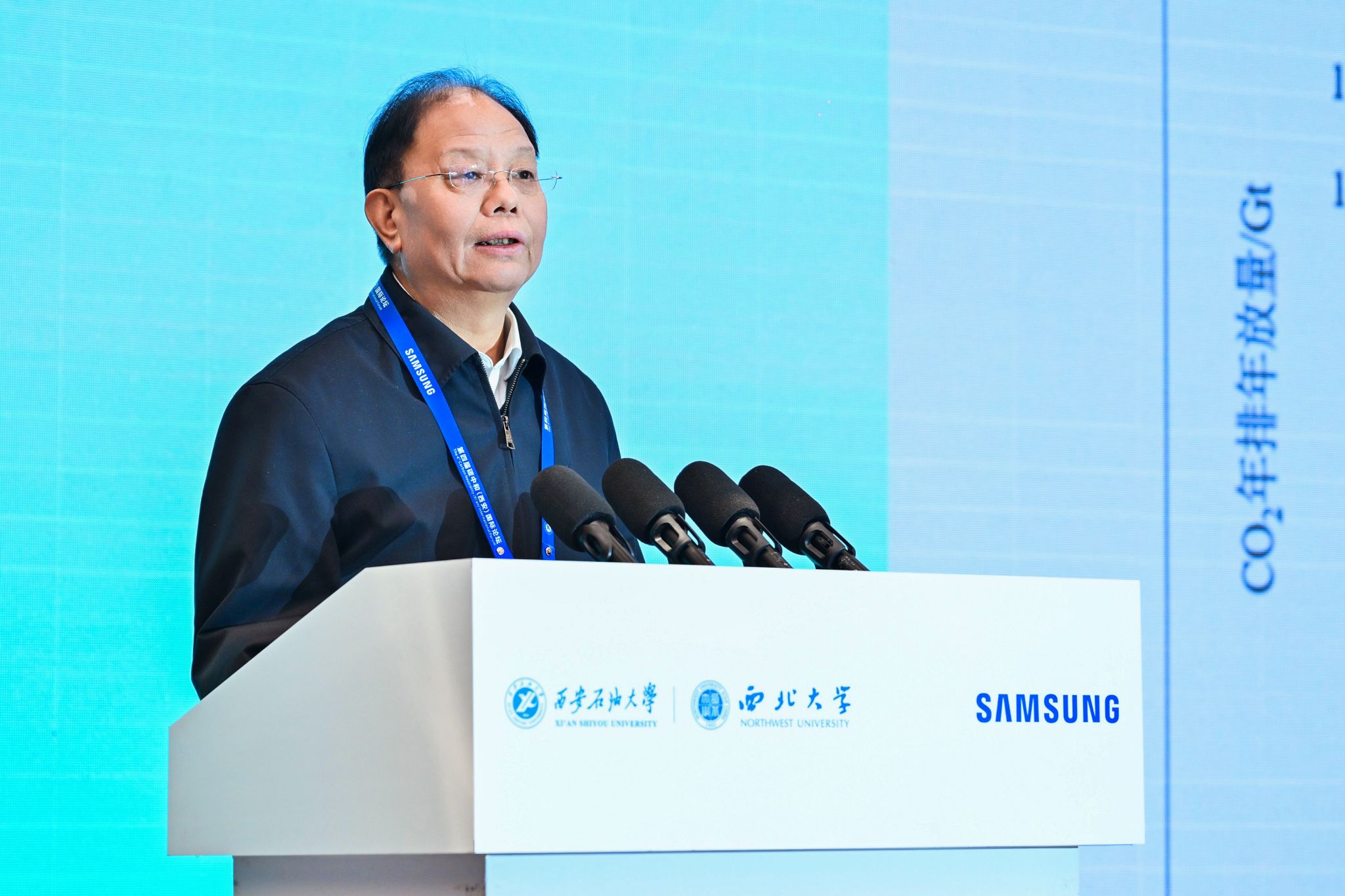本屆論壇以“轉型與共贏:邁向碳中和的能源之路”為主題,由陜西省發(fā)展和改革委員會、陜西省科學技術廳指導,得到三星(中國)半導體有限公司的大力支持。中國工程院院士李陽、李根生、高雄厚、王香增,加拿大工程院院士Tayfun Babadagli、加拿大皇家科學院與工程院院士Y. Frank Cheng,陜西省科學技術廳副廳長白崇軍、陜西省發(fā)展和改革委員會二級巡視員馬宏生、陜西省教育廳二級巡視員張和平,三星(中國)半導體有限公司董事長樸性昱,我校黨委書記常江、西北大學副校長陳富林、西安交通大學副校長嚴俊杰、西安科技大學副校長李迎波出席論壇開幕式。來自國內外能源領域知名專家學者、政府機構、企業(yè)及高校代表500余人參加會議。論壇開幕式由我校校長王進富主持。