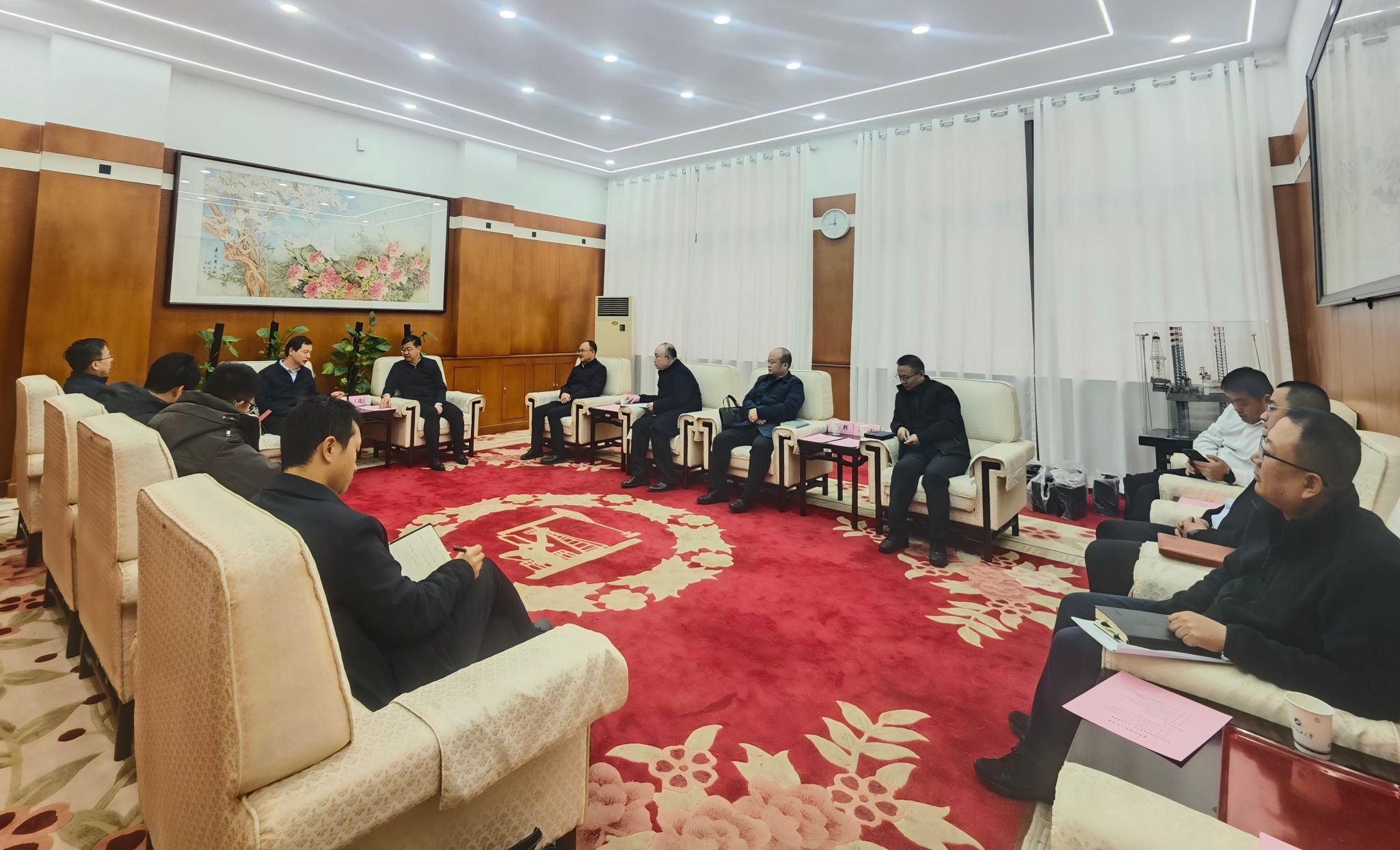 王進富對省發(fā)改委、省能源局的到訪與支持表示熱烈歡迎和衷心感謝。他表示,學(xué)校始終扎根陜西、深耕能源產(chǎn)業(yè)發(fā)展,此次“兩個聯(lián)系”制度的落地,為學(xué)校發(fā)展搭建了優(yōu)質(zhì)的溝通對接平臺。學(xué)校將以此為契機,系統(tǒng)梳理學(xué)校發(fā)展的政策需求與項目規(guī)劃,持續(xù)深化與省發(fā)改委、省能源局的常態(tài)化溝通協(xié)作,充分發(fā)揮學(xué)科專業(yè)特色與優(yōu)勢,在能源領(lǐng)域人才培養(yǎng)、科研技術(shù)攻關(guān)、智庫決策支持等方面精準發(fā)力,深度融入陜西能源產(chǎn)業(yè)發(fā)展大局,為陜西打造能源產(chǎn)業(yè)高地貢獻更多高校智慧和力量。
