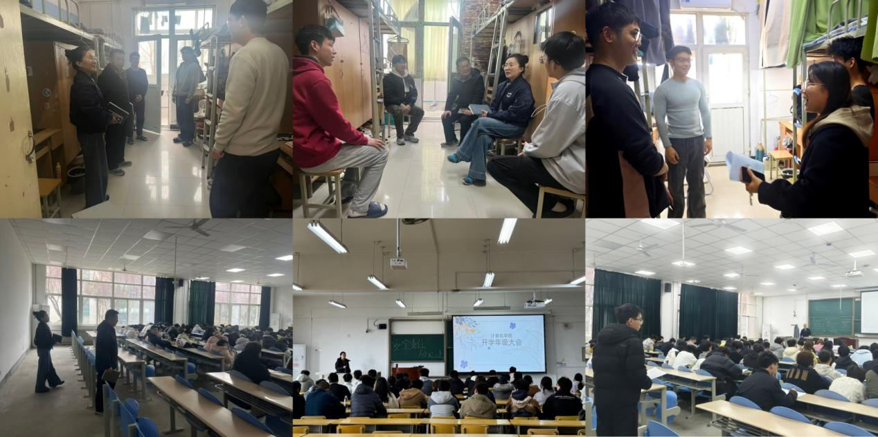 計(jì)算機(jī)學(xué)院多措并舉筑牢新學(xué)期學(xué)生管理根基,學(xué)院領(lǐng)導(dǎo)班子率先深入宿舍慰問學(xué)生、排查安全隱患,走進(jìn)課堂聽課查課,累計(jì)檢查宿舍36間、查課25次;全體輔導(dǎo)員、班主任全面覆蓋學(xué)生宿舍與課堂,累計(jì)檢查宿舍503間、查課89次。各年級(jí)召開年級(jí)大會(huì)、各班召開主題班會(huì),圍繞安全穩(wěn)定、傳染病預(yù)防、早操晚自習(xí)、電動(dòng)車安全、防電信詐騙等內(nèi)容開展宣講。學(xué)院同步開展學(xué)業(yè)警示教育,摸排重點(diǎn)關(guān)注學(xué)生情況,扎實(shí)推進(jìn)就業(yè)促進(jìn)與引導(dǎo),開展精細(xì)化就業(yè)指導(dǎo),全方位覆蓋學(xué)生學(xué)習(xí)生活各環(huán)節(jié)。