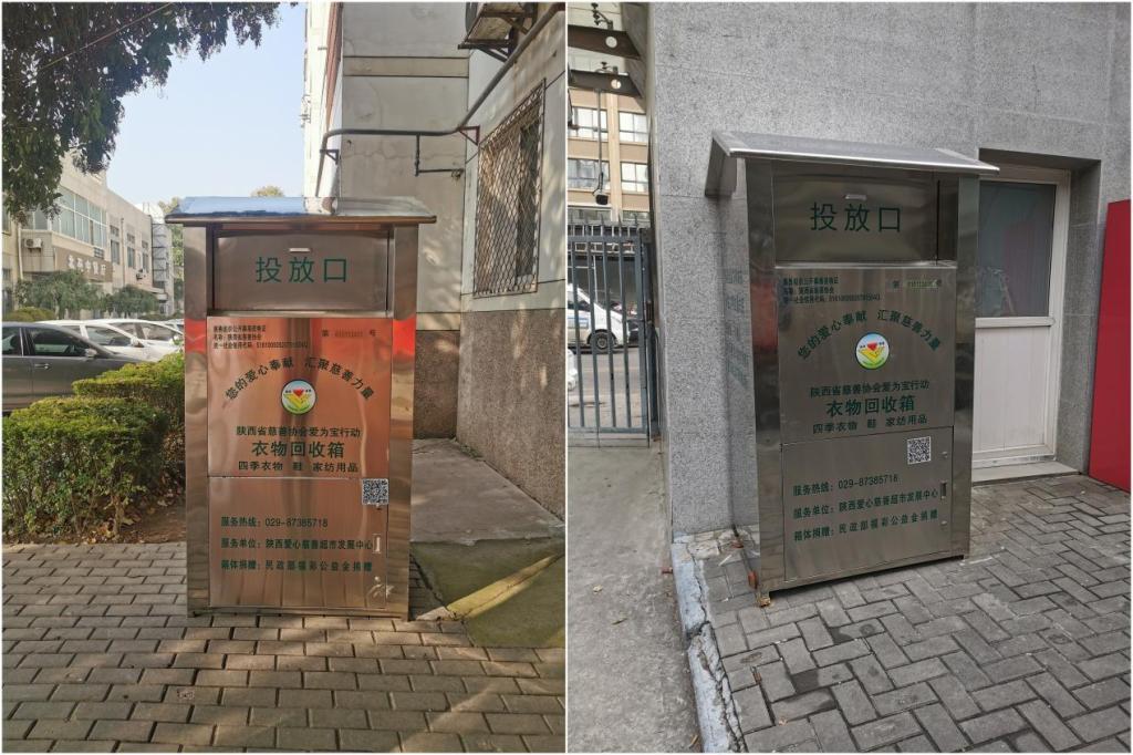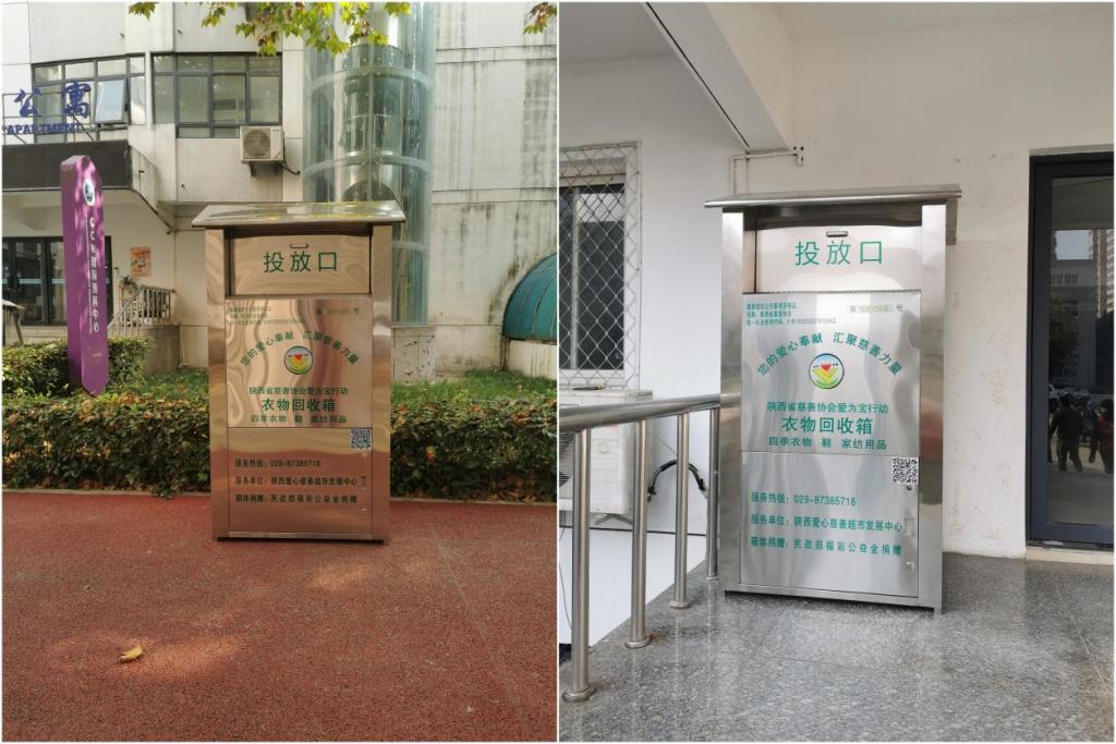 為深入貫徹習(xí)近平總書記“推動(dòng)形成綠色發(fā)展方式和生活方式”的重要論述,切實(shí)解決學(xué)校師生、居民家中產(chǎn)生舊衣物的處置難題,在前期充分調(diào)研論證的基礎(chǔ)上,石油大學(xué)社區(qū)與陜西省慈善協(xié)會(huì)攜手,于11月14日起已分別在學(xué)校雁塔校區(qū)南院住宅區(qū)、北院生活區(qū)和明德校區(qū)設(shè)立了舊衣物回收箱,旨在推廣綠色低碳生活方式,弘揚(yáng)扶貧濟(jì)困,傳遞愛(ài)心,傳播慈善文化精神。