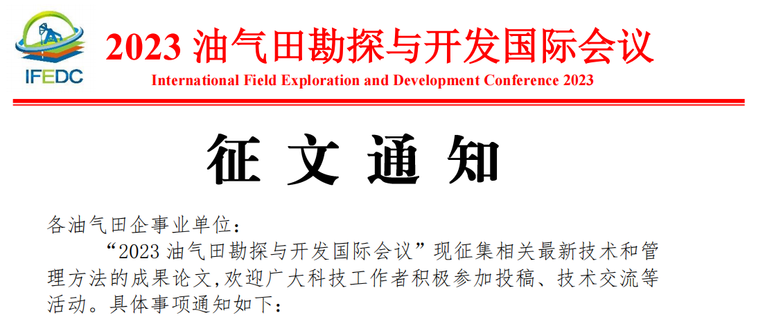 2023油氣田勘探與開發(fā)國(guó)際會(huì)議(IFEDC)征文通知