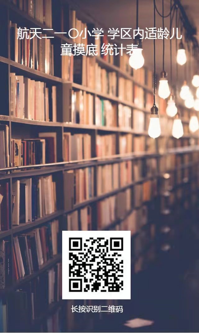 三、請(qǐng)有意向登記并準(zhǔn)備入學(xué)雁塔區(qū)航天二一〇小學(xué)的適齡兒童家長(zhǎng),掃描下面所附二維碼,按提示填寫(xiě)“航天二一〇小學(xué)學(xué)區(qū)內(nèi)適齡兒童摸底統(tǒng)計(jì)表”中相關(guān)信息。家長(zhǎng)及兒童無(wú)需到社區(qū)進(jìn)行登記。